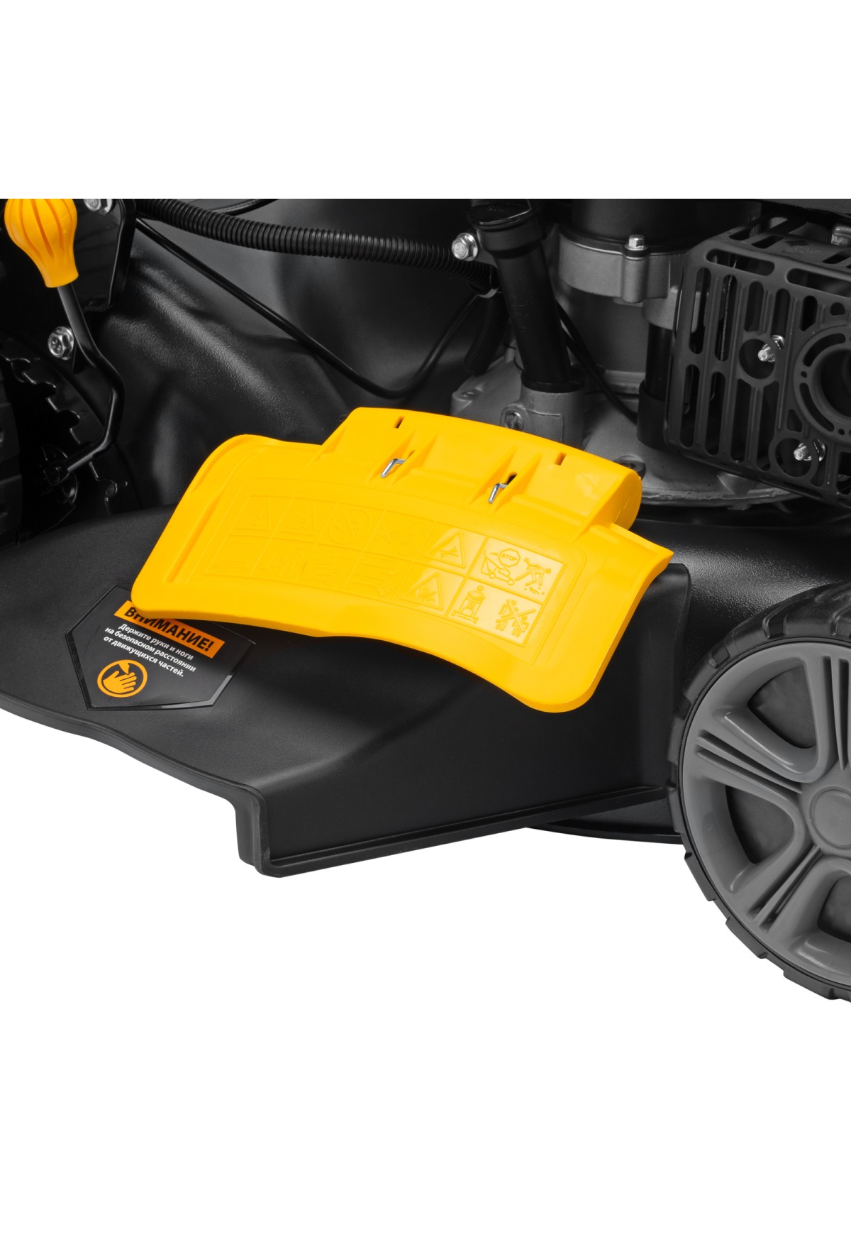 - Эргономичность — оптимизированная геометрия деки обеспечивает максимально эффективный сбор травы.