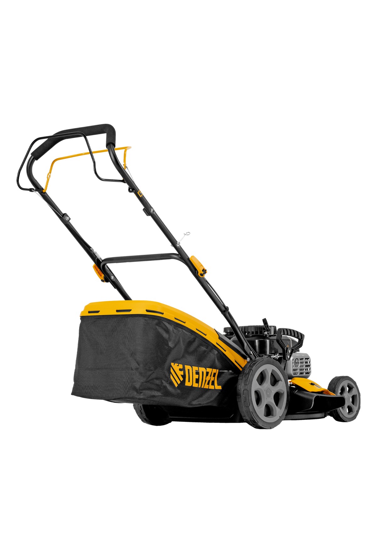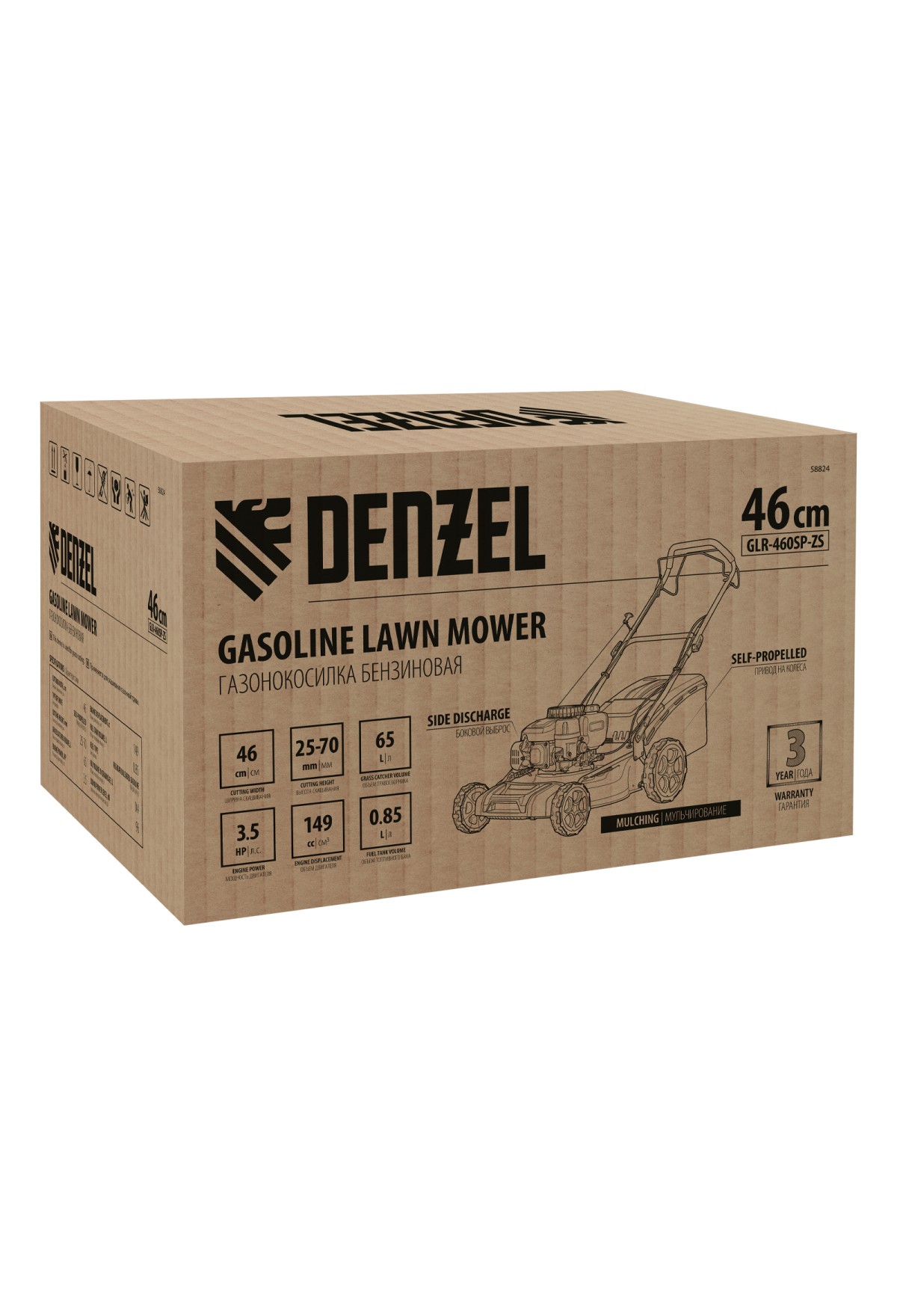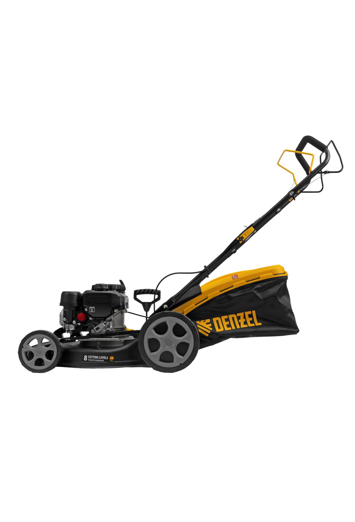Бензиновая газонокосилка Denzel GLR-460SP-ZS 58824 с приводом на колеса и травосборником вместимостью 65 л, с надежным и экономичным 4-тактным двигателем объемом 149 см3, обеспечивает ширину прохода 46 см. Предназначена для стрижки газонов и скашивания травы в саду, будет полезна для ухода за дачным участком или придомовой территорией. Высота скашивания легко регулируется одним рычагом в диапазоне 25-70 мм (предусмотрено 8 уровней).