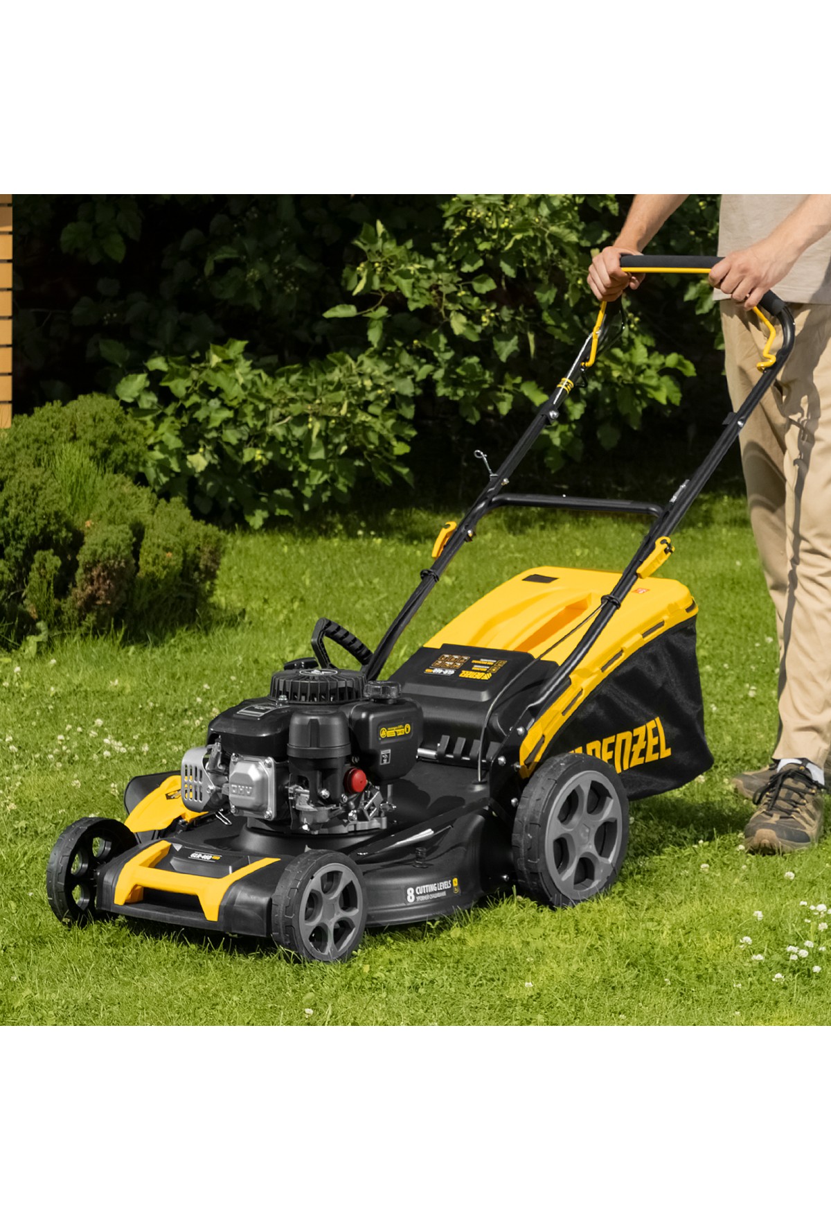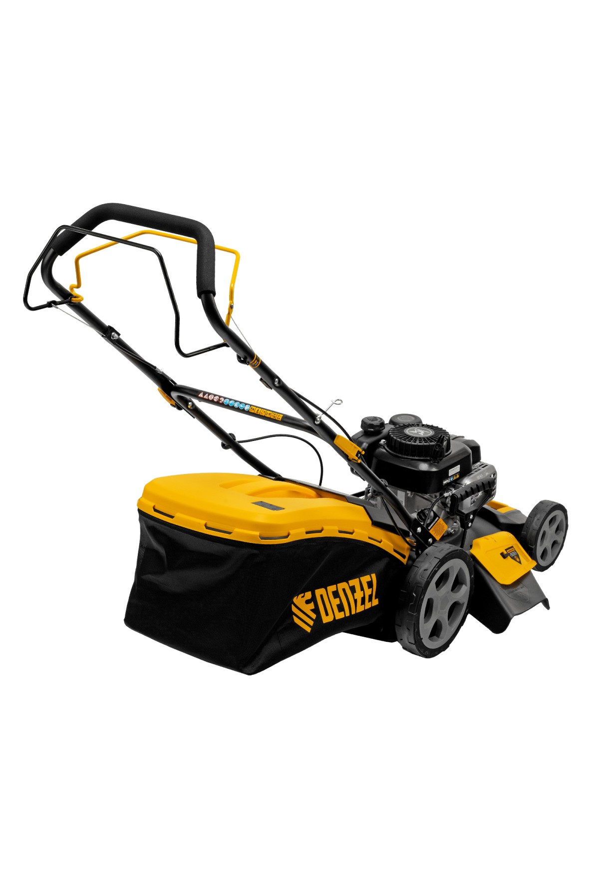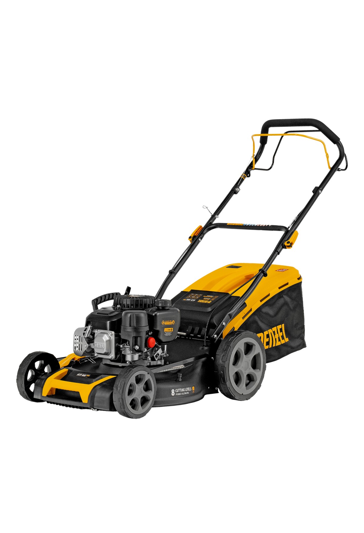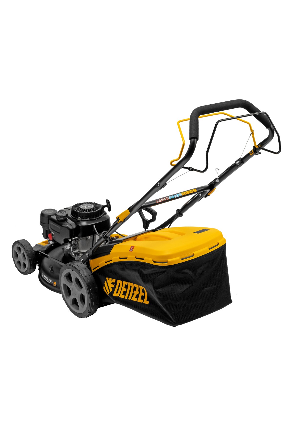 Бензиновая газонокосилка Denzel GLR-460SP-ZS 58824 с приводом на колеса и травосборником вместимостью 65 л, с надежным и экономичным 4-тактным двигателем объемом 149 см3, обеспечивает ширину прохода 46 см. Предназначена для стрижки газонов и скашивания травы в саду, будет полезна для ухода за дачным участком или придомовой территорией. Высота скашивания легко регулируется одним рычагом в диапазоне 25-70 мм (предусмотрено 8 уровней).