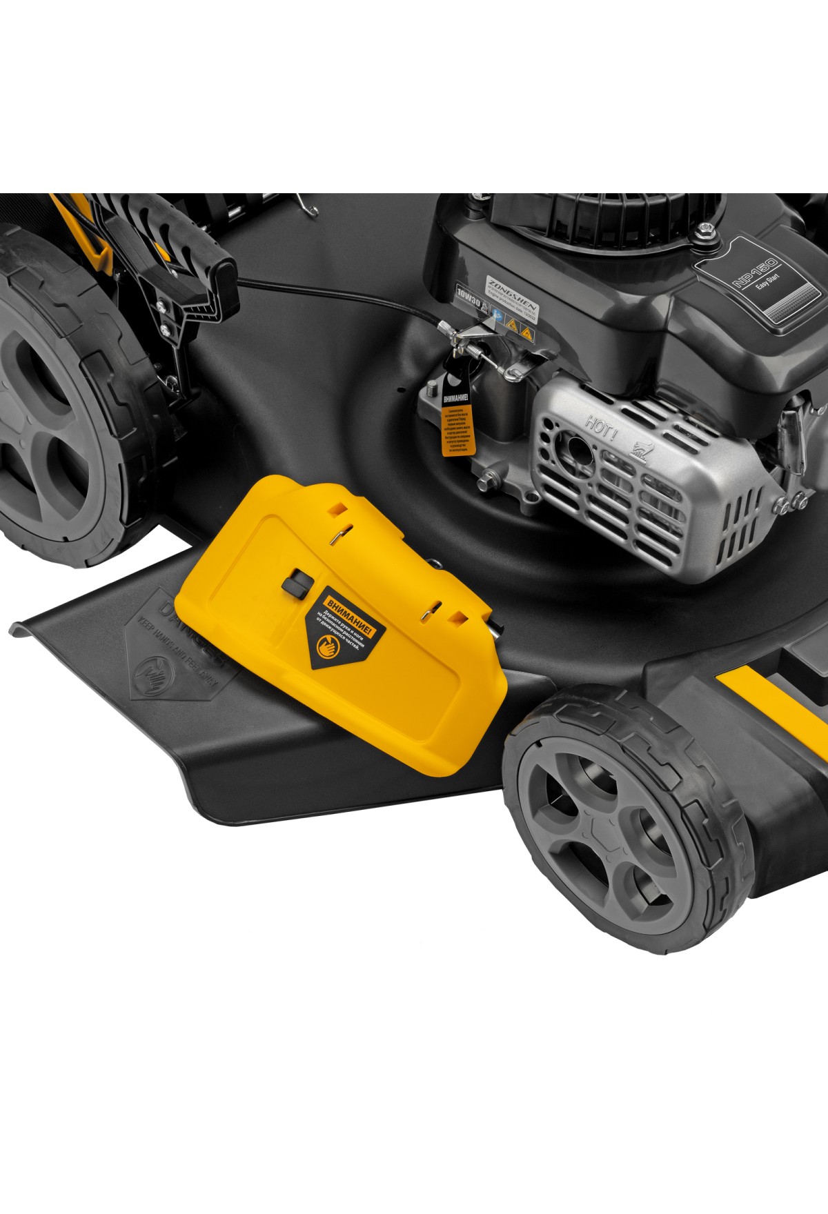 - Оптимизированная геометрия деки — прочный корпус изготовлен таким образом, чтобы срезанная трава быстрее и легче попадала в травосборник.