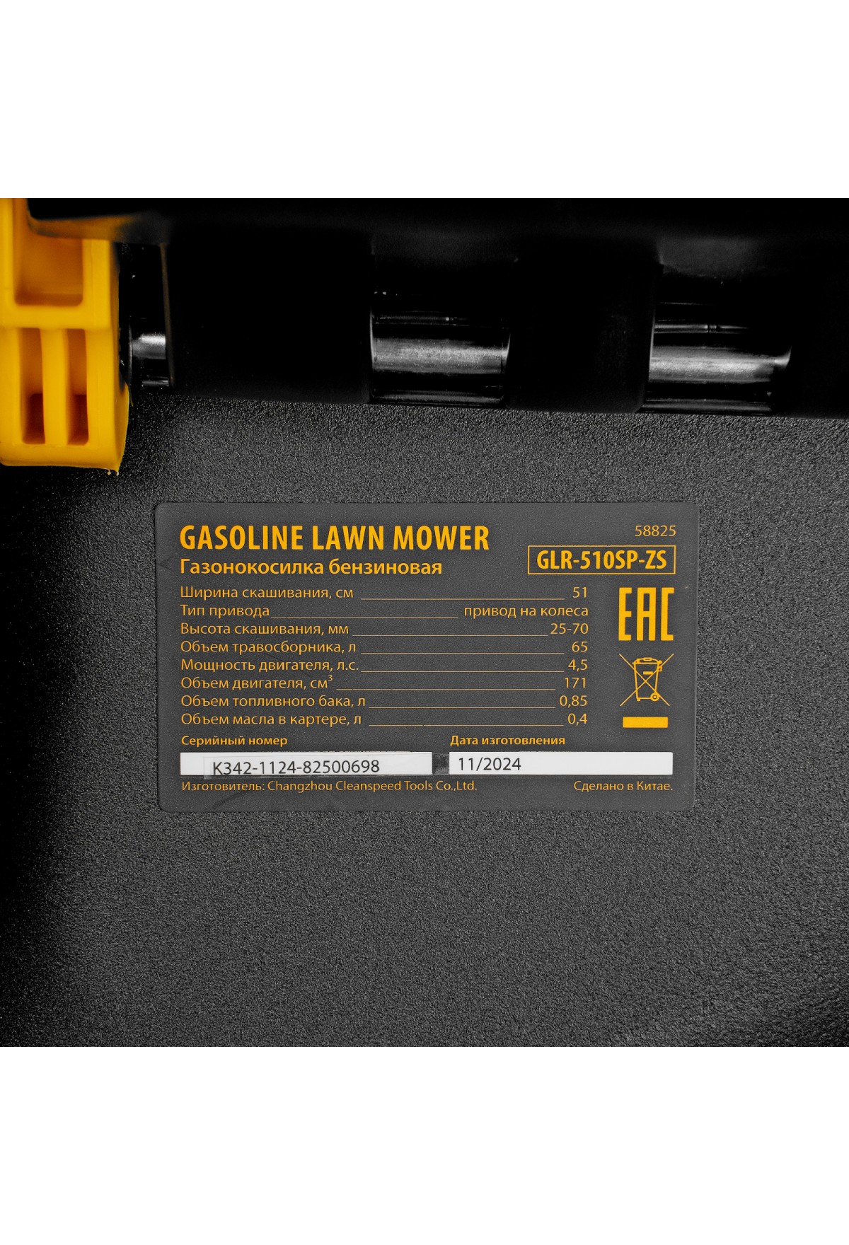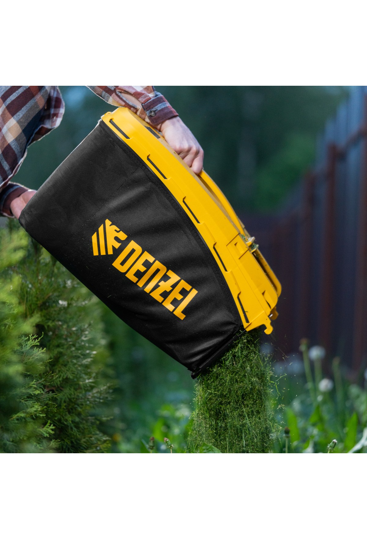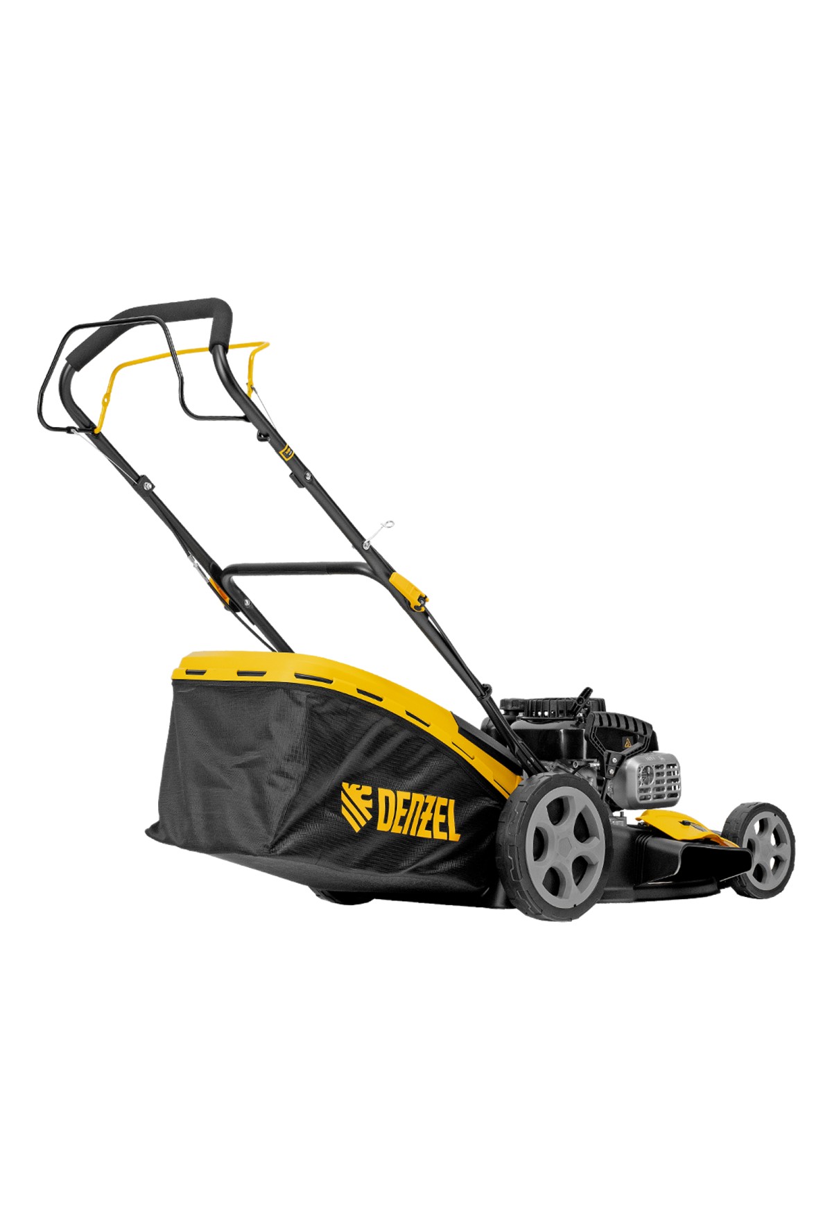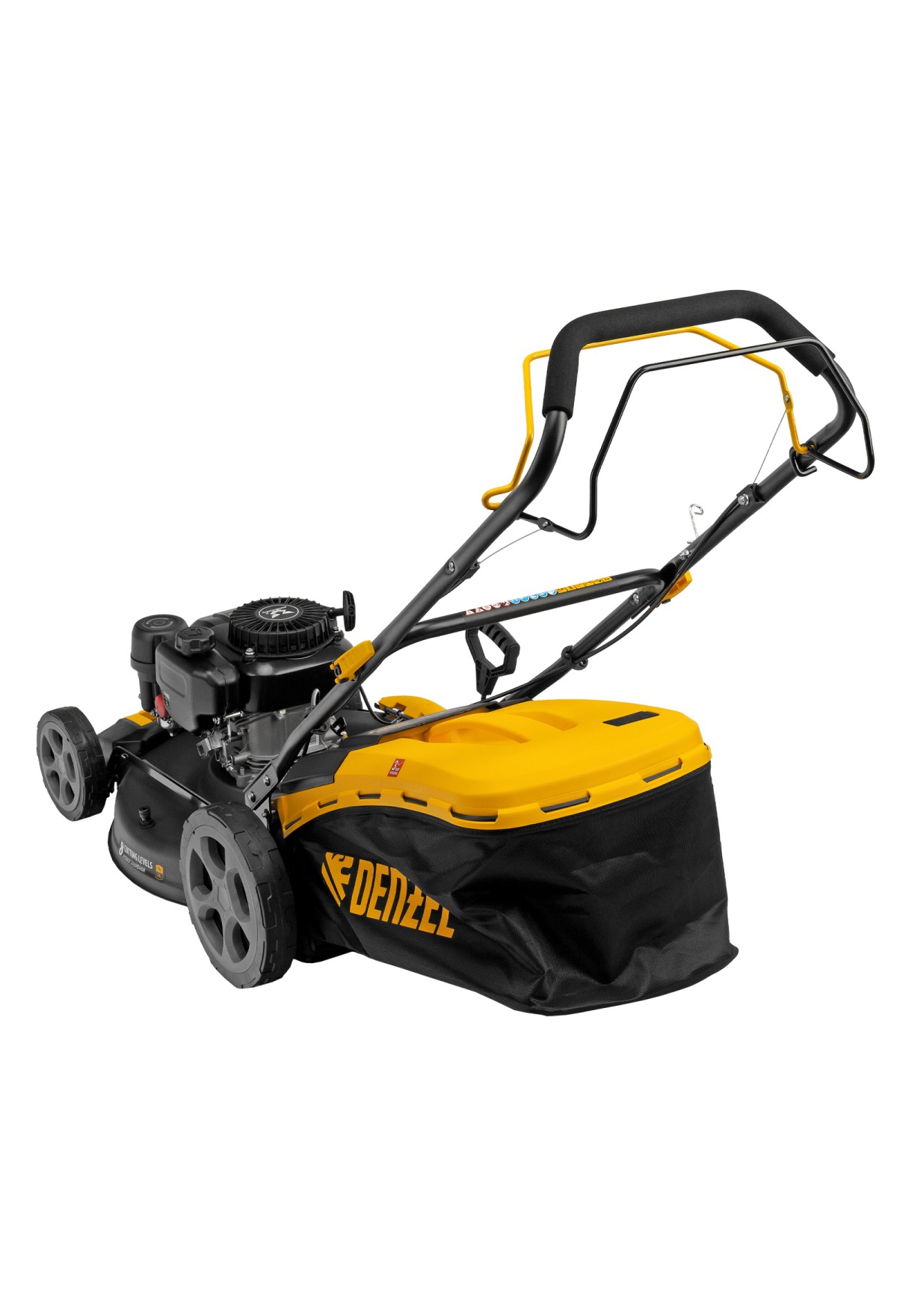 Бензиновая газонокосилка Denzel GLR-510SP-ZS 58825 с приводом на колеса и травосборником вместимостью 65 л, с надежным и экономичным 4-тактным двигателем объемом 171 см3, обеспечивает ширину прохода 51 см. Предназначена для стрижки газонов и скашивания травы в саду, будет полезна для ухода за дачным участком или придомовой территорией большой площади. Высота скашивания легко регулируется одним рычагом в диапазоне 25-70 мм (предусмотрено 8 уровней).