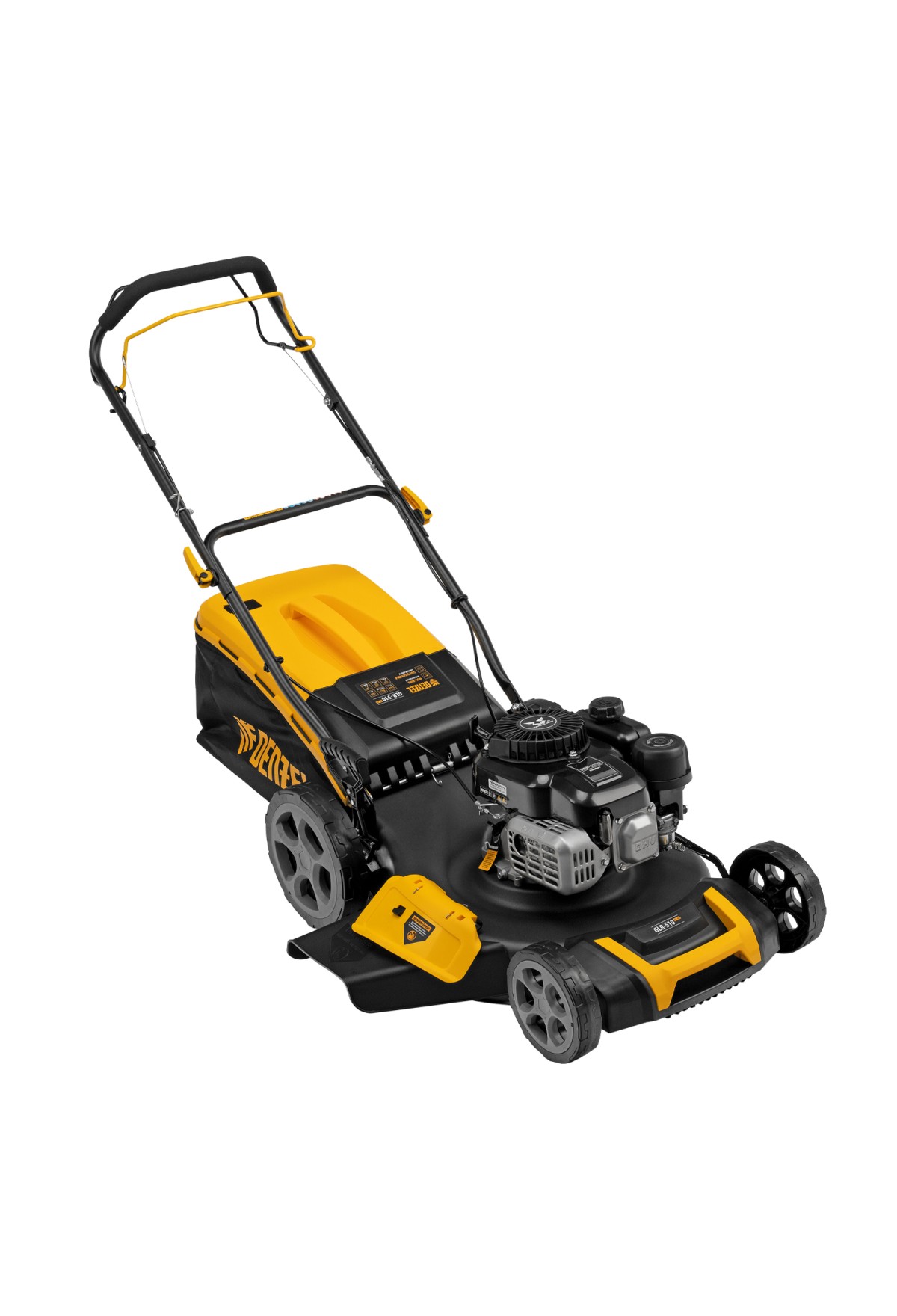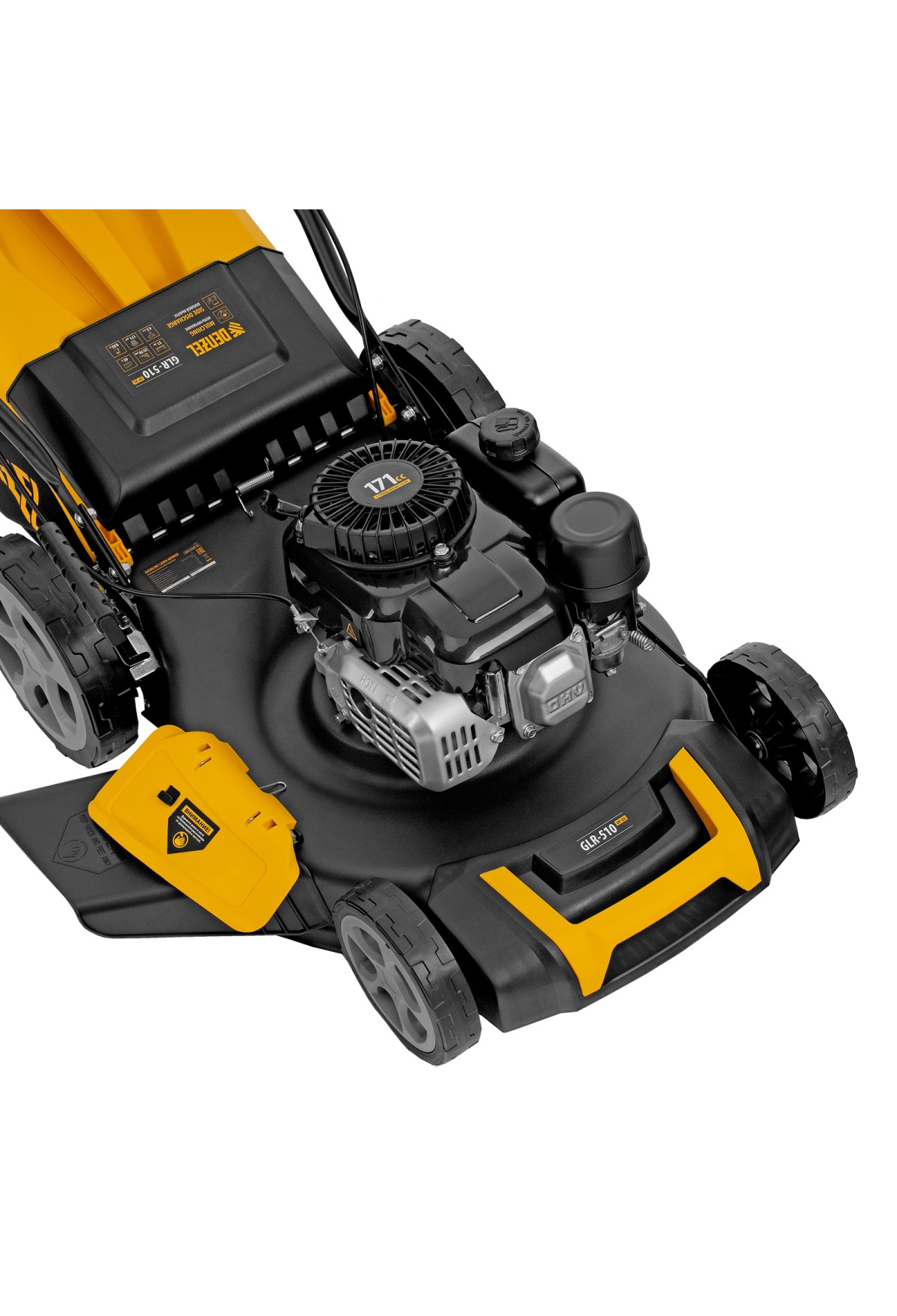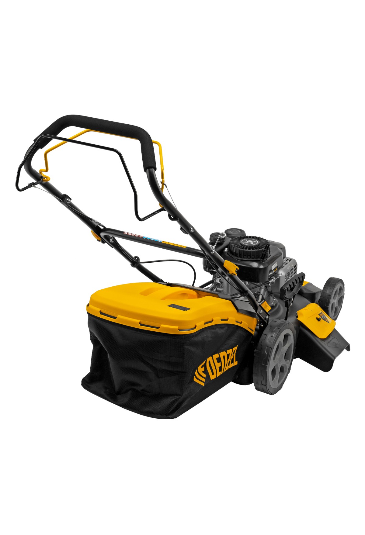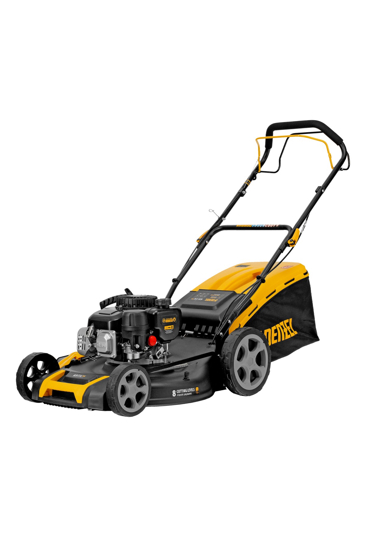 Бензиновая газонокосилка Denzel GLR-510SP-ZS 58825 с приводом на колеса и травосборником вместимостью 65 л, с надежным и экономичным 4-тактным двигателем объемом 171 см3, обеспечивает ширину прохода 51 см. Предназначена для стрижки газонов и скашивания травы в саду, будет полезна для ухода за дачным участком или придомовой территорией большой площади. Высота скашивания легко регулируется одним рычагом в диапазоне 25-70 мм (предусмотрено 8 уровней).