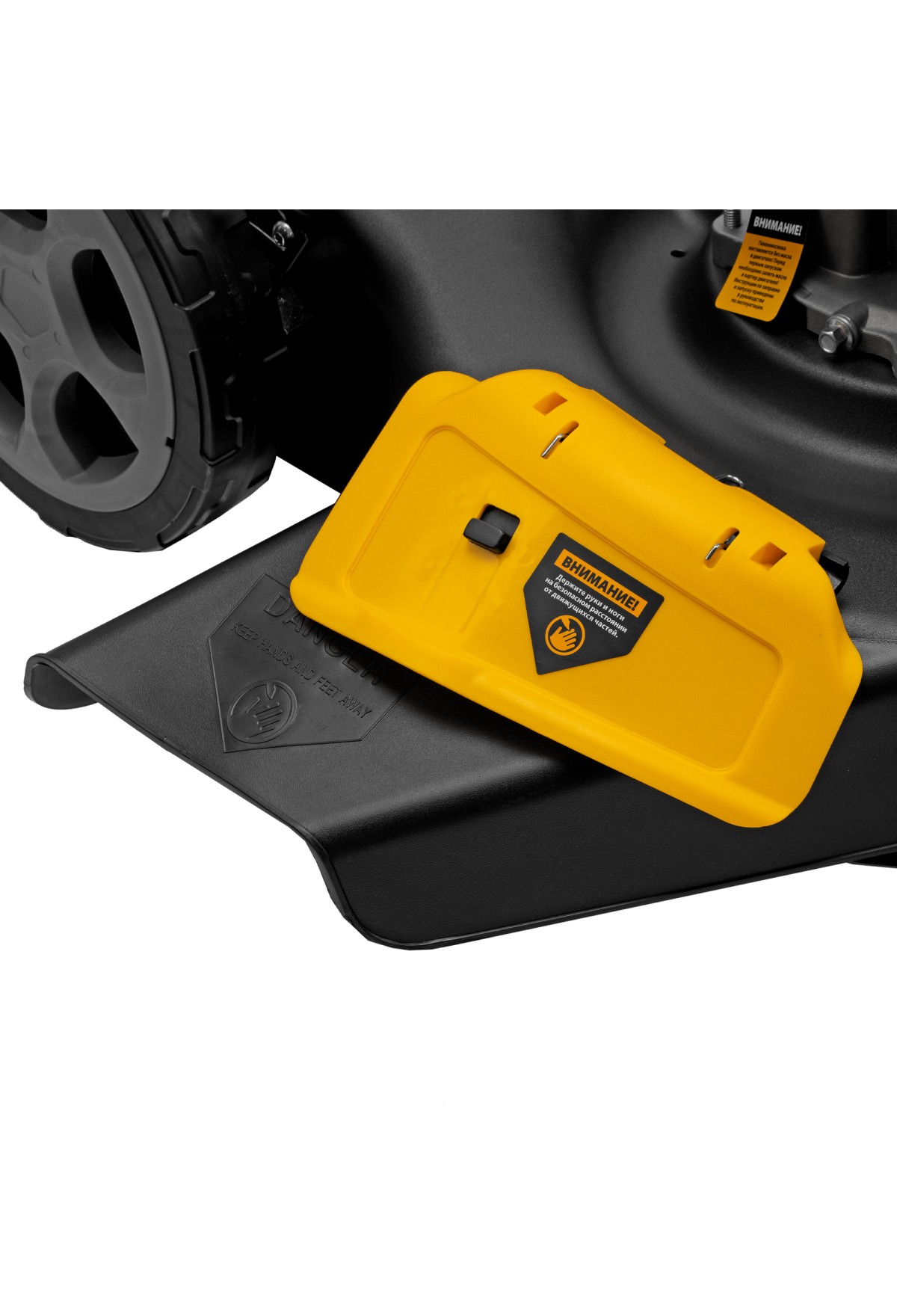 - Оптимизированная геометрия деки — прочный корпус изготовлен таким образом, чтобы срезанная трава быстрее и легче попадала в травосборник.