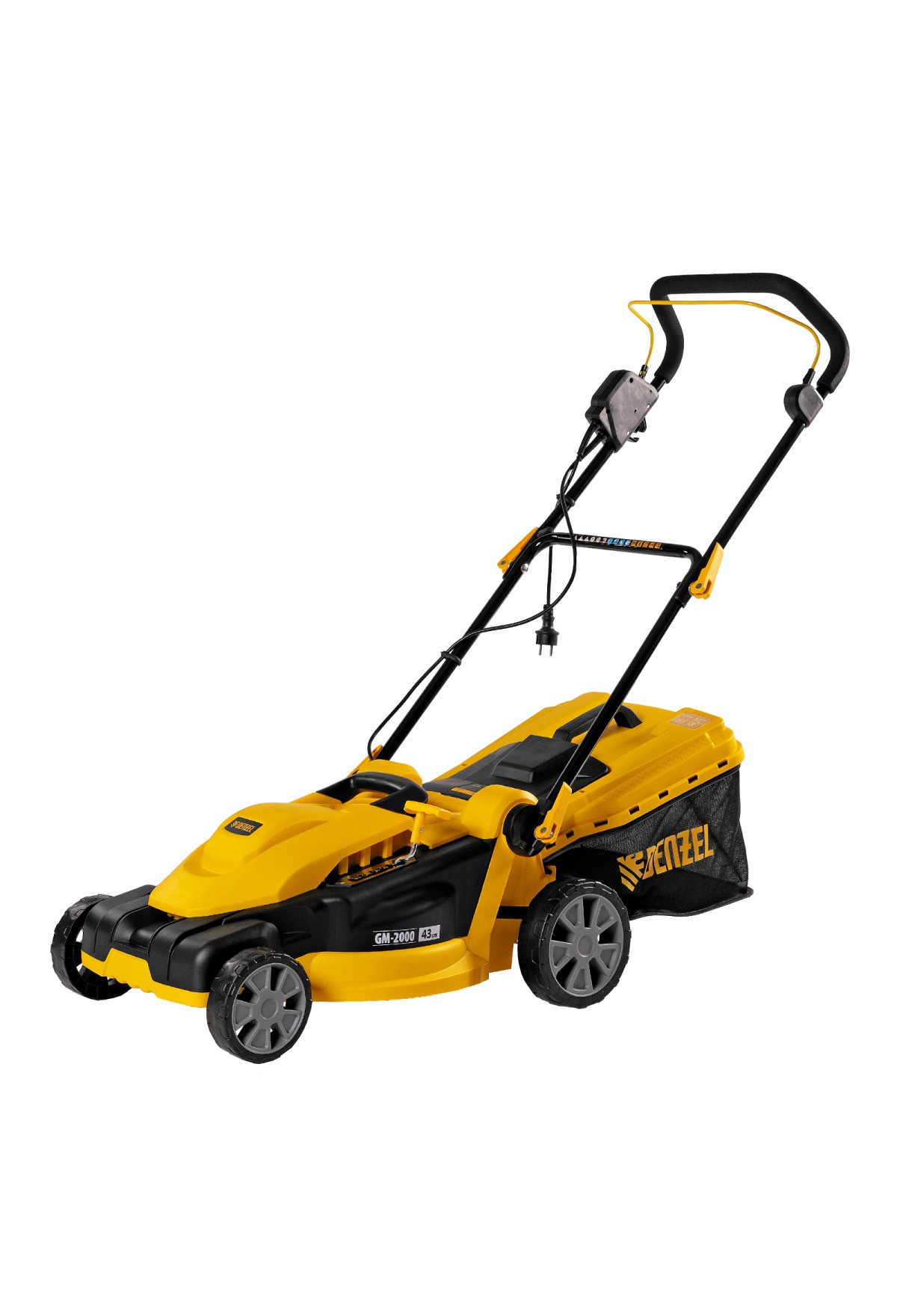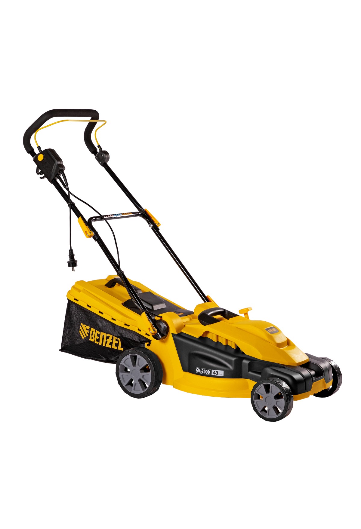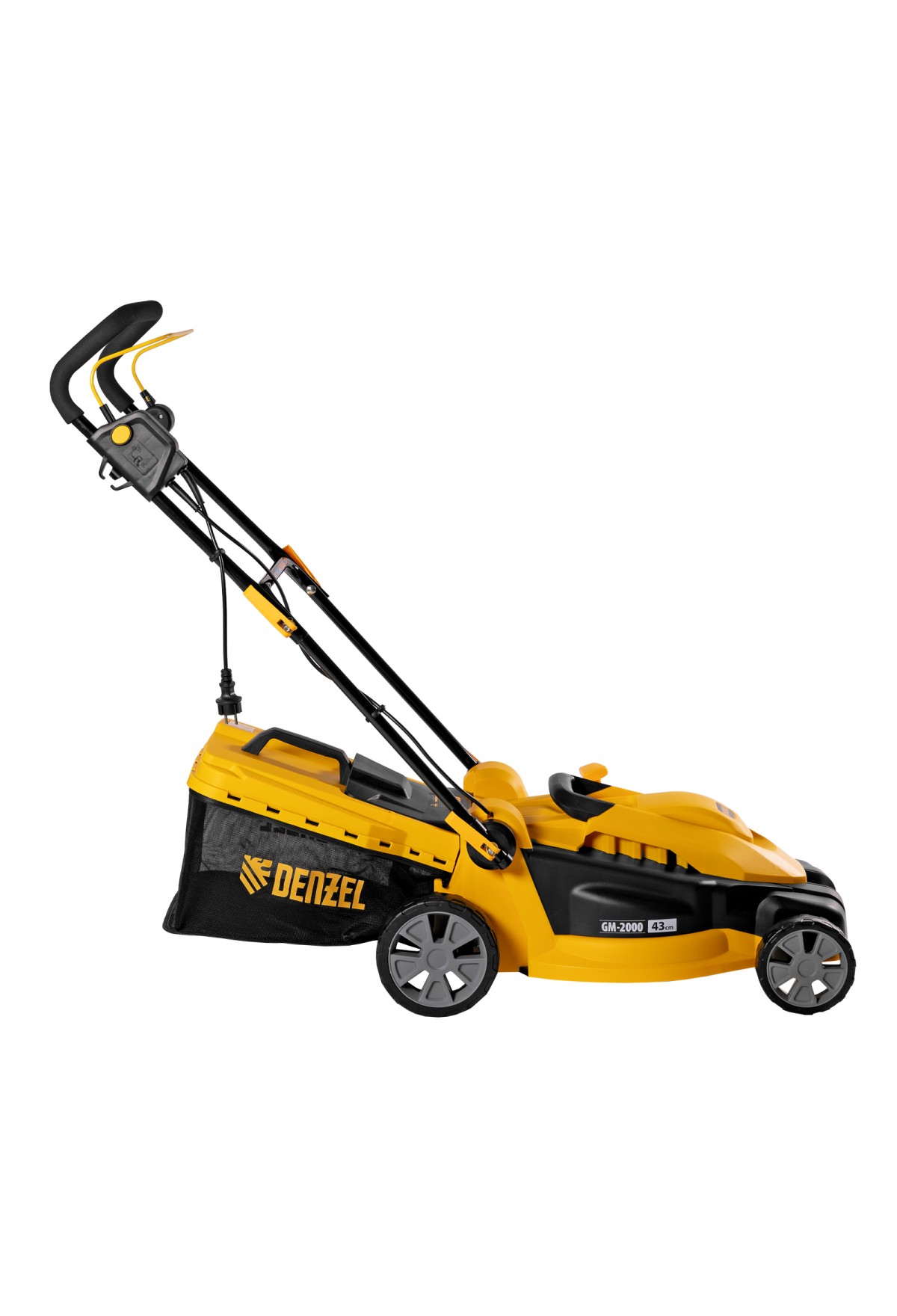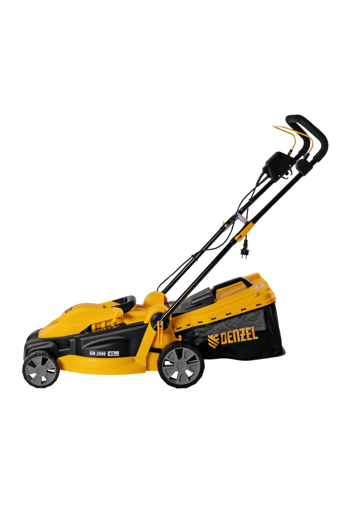 Электрическая газонокосилка Denzel GM-2000 96618 с 6 уровнями скашивания и травосборником на 45 л — маневренная и простая в управлении техника, обеспечивающая ширину скашивания 43 см. Быстро справляется с работой на площади примерно 8 соток, помогает оформлять аккуратный газон в саду и на дачном участке. Для достижения наилучшего результата предусмотрено 6 уровней скашивания травы: 20 мм, 30 мм, 40 мм, 50 мм, 60 мм и 70 мм. Ключевой особенностью является наличие функции мульчирования, которая позволяет измельчать траву в процессе скашивания для последующего использования в качестве компоста.,Косилка не требует особых навыков и сложного технического обслуживания — не нужно менять масло и свечи, заливать и сливать бензин, долго заводить и прогревать двигатель. Электродвигатель мощностью 2000 Вт работает тихо и без вредных выхлопов, он экологичен и экономичен.