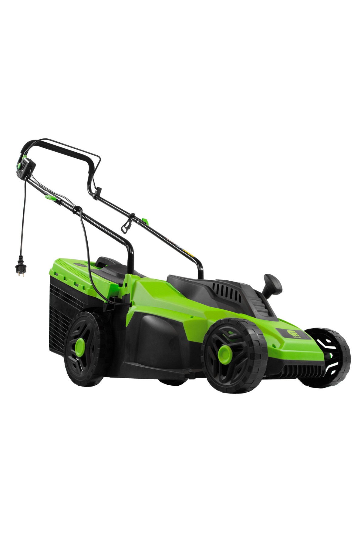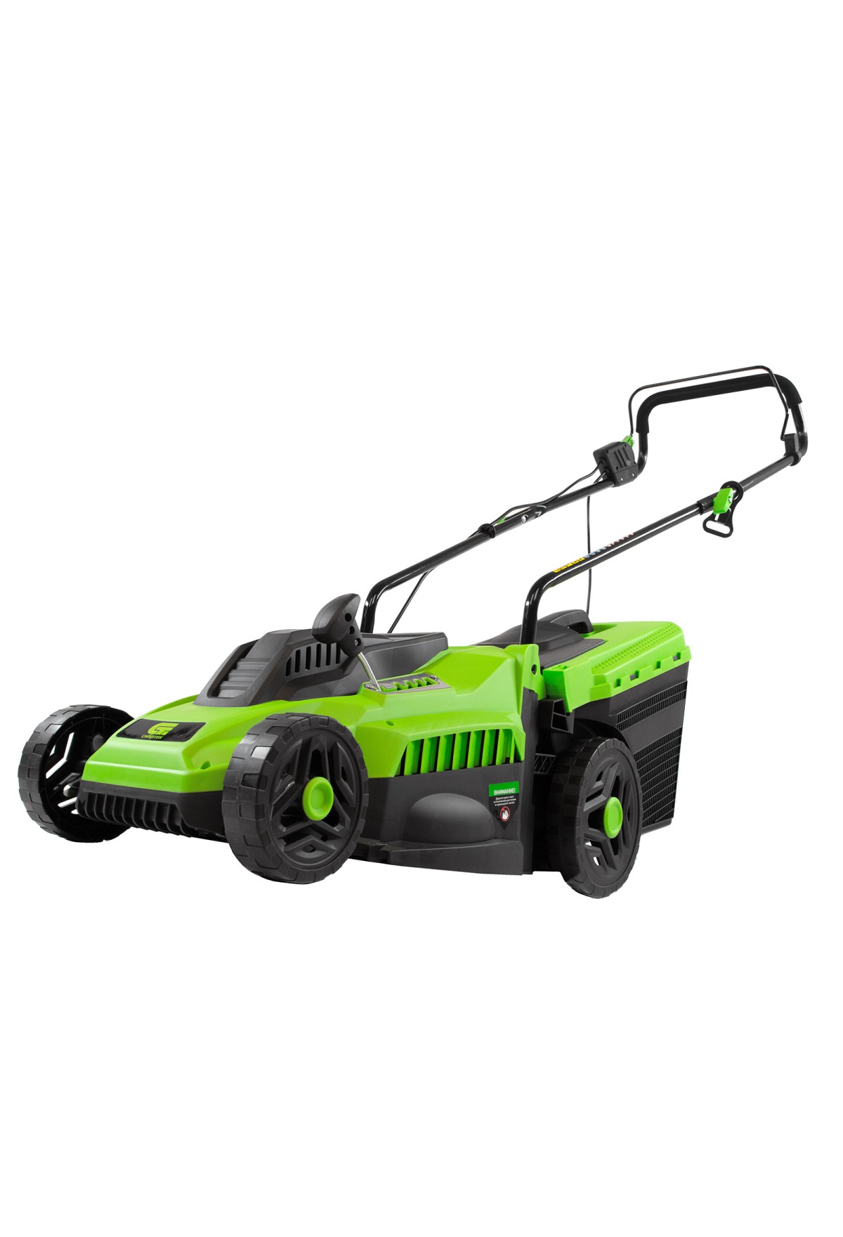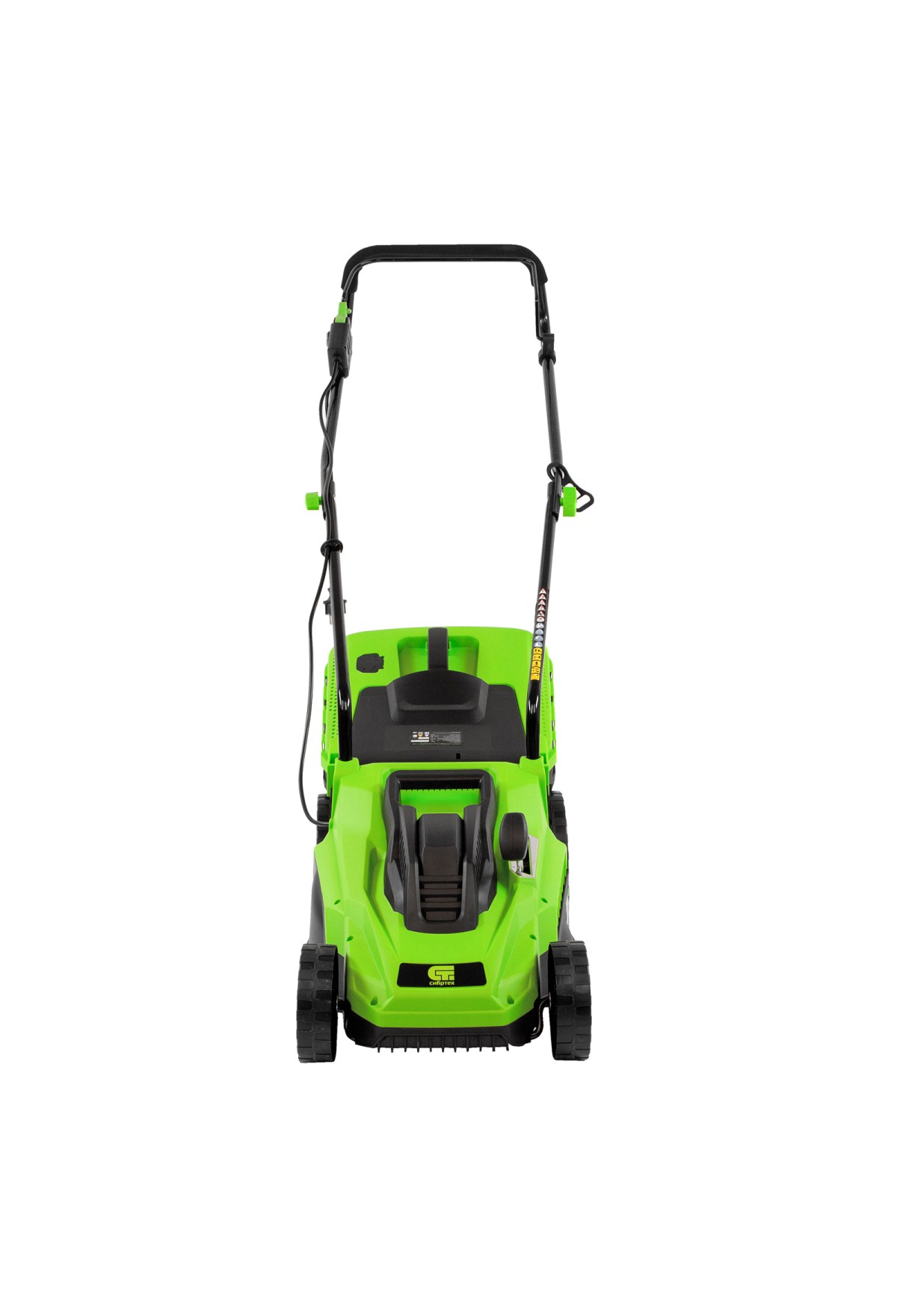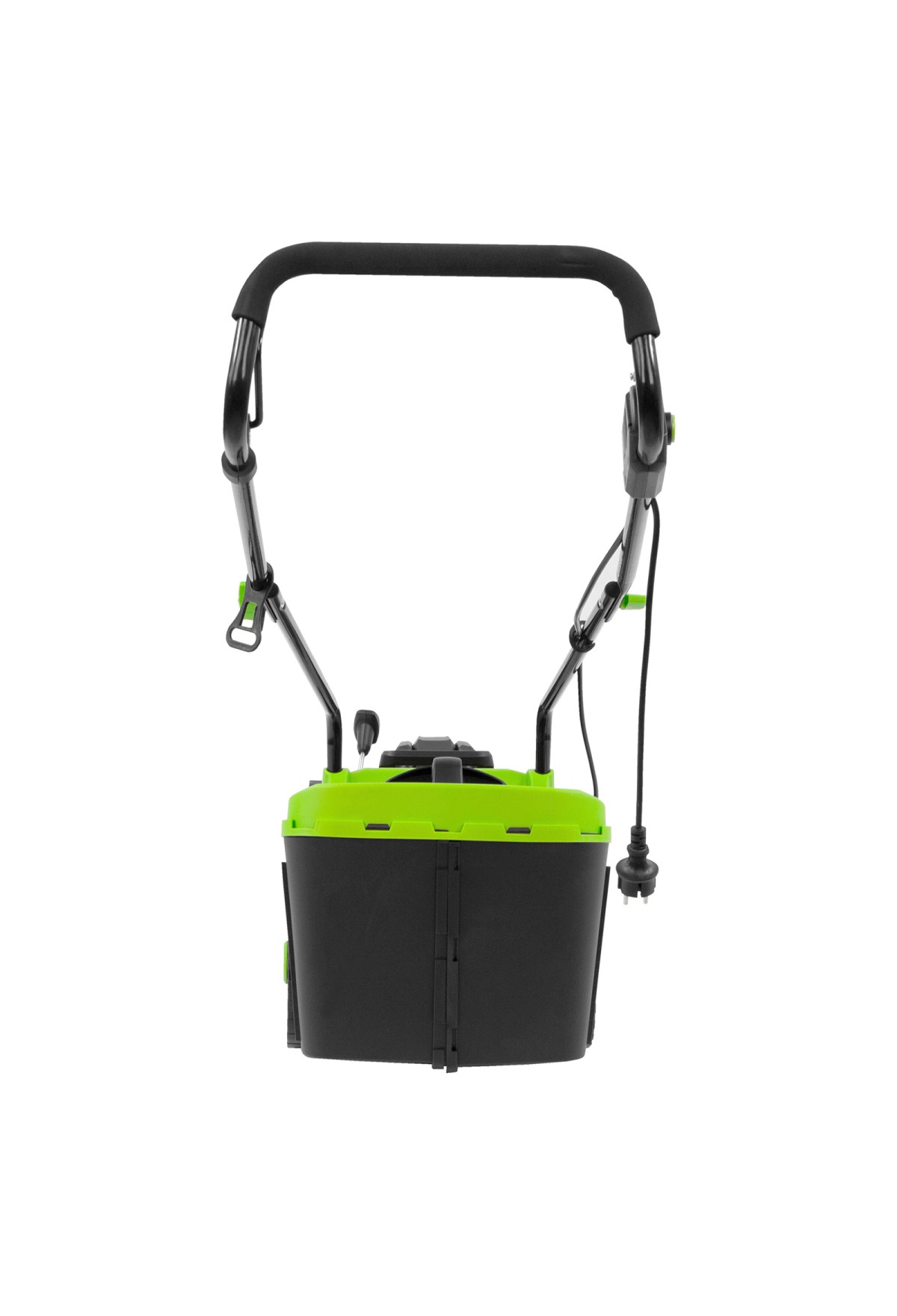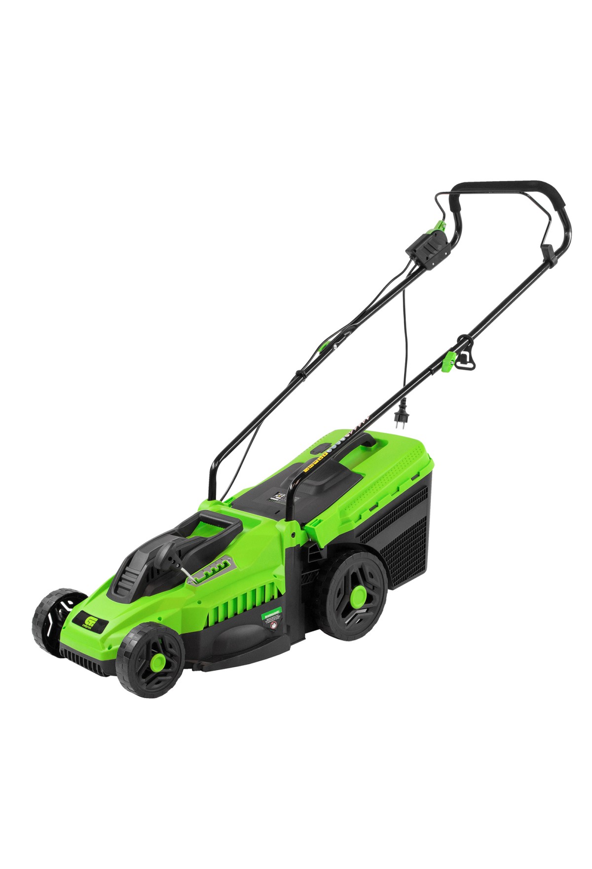 - Комфортная эксплуатация — для управления используется скоба, а не рычаг, как на большинстве электрокосилок, что делает работу удобной, особенно для левшей.