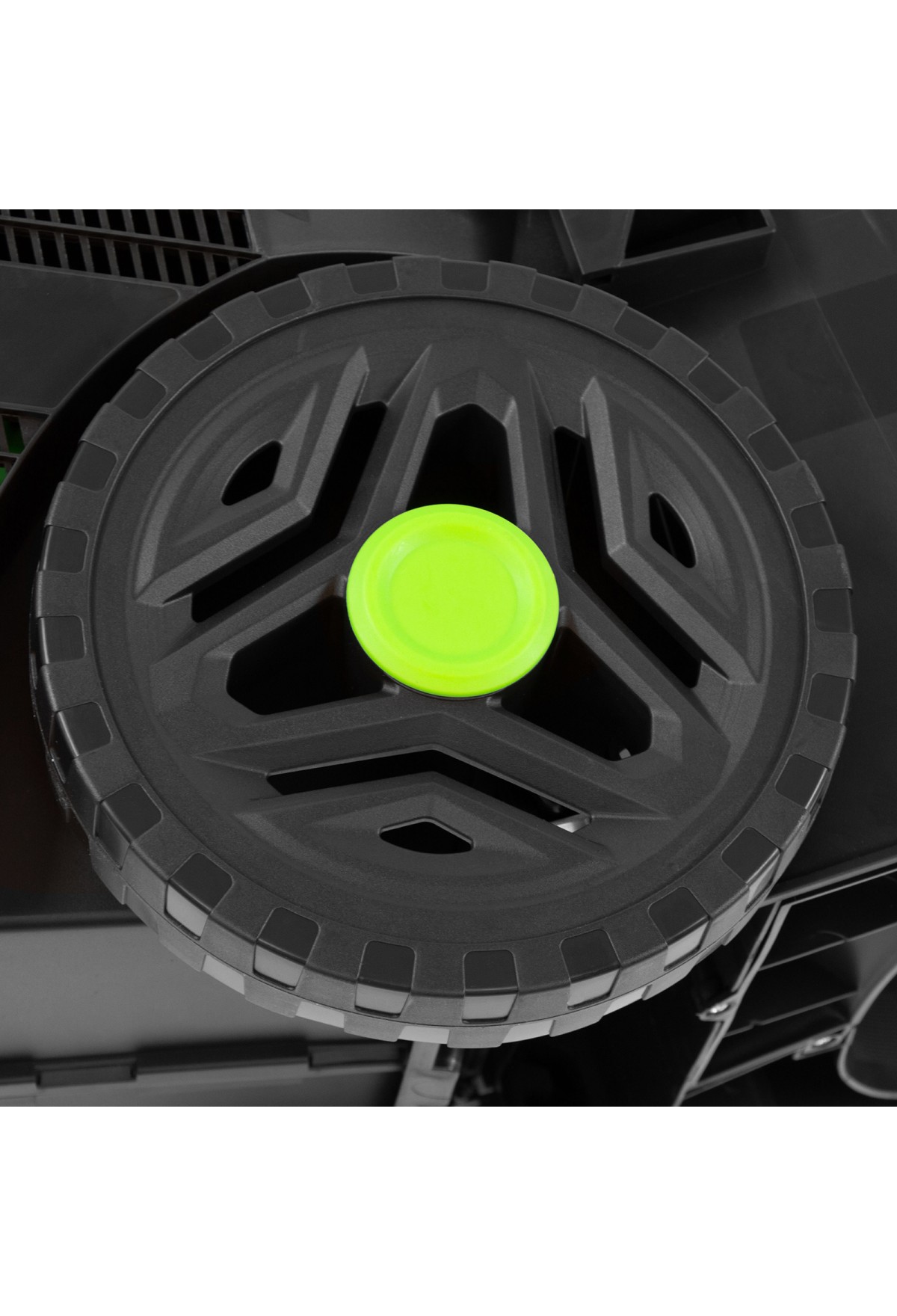 - Наличие травосборника — трава собирается в резервуар объемом 35 л, имеется индикатор наполненности.