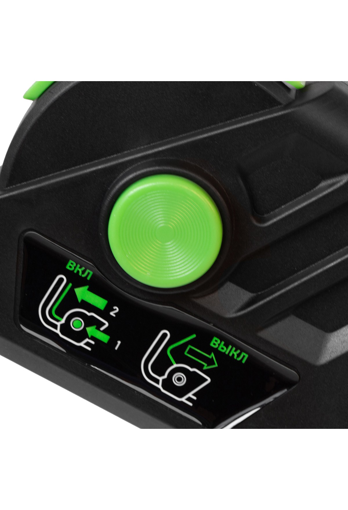 - Блокировка случайного пуска — электродвигатель включается только при длительном удержании кнопки запуска одновременно с нажатием скобы выключения.