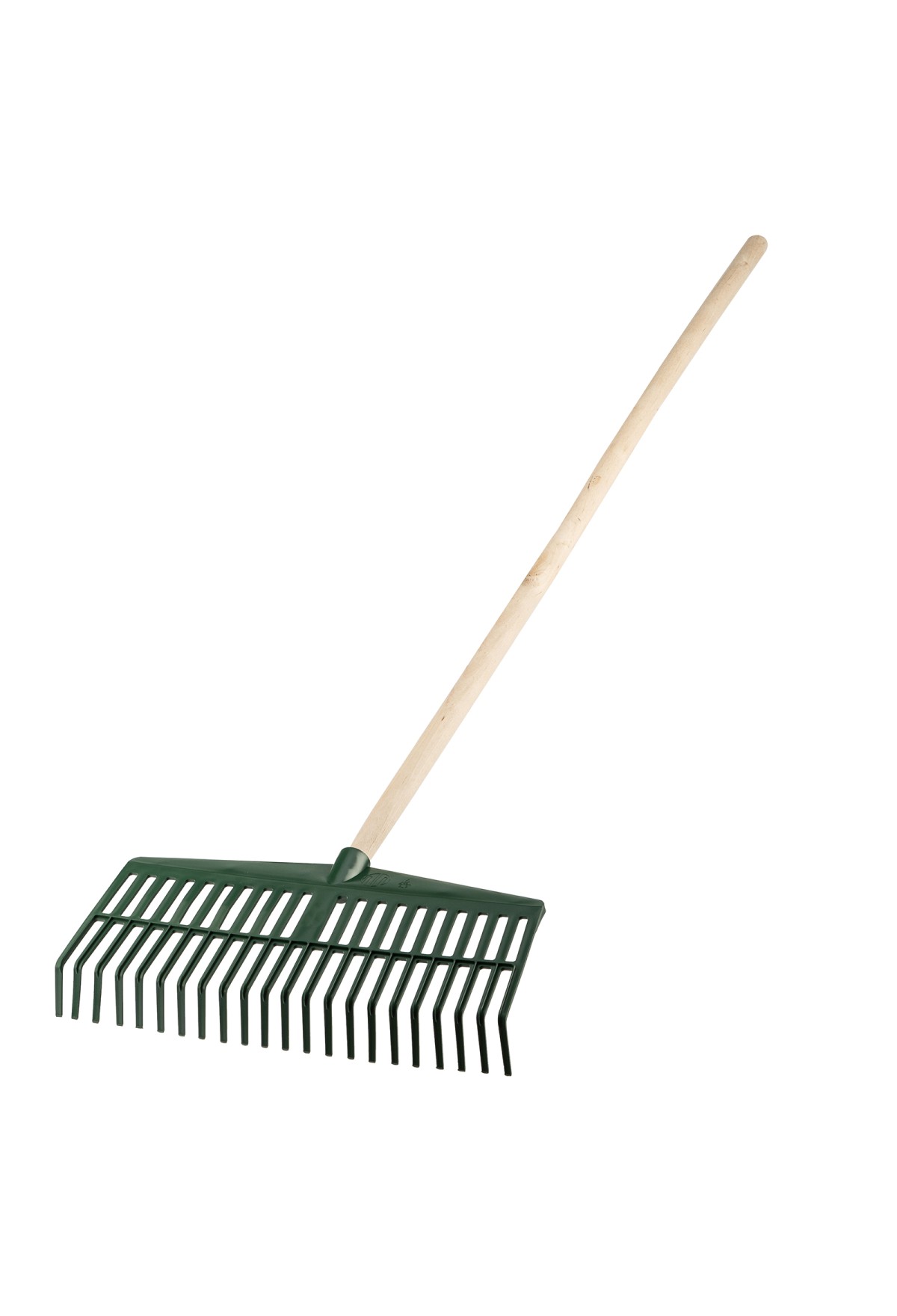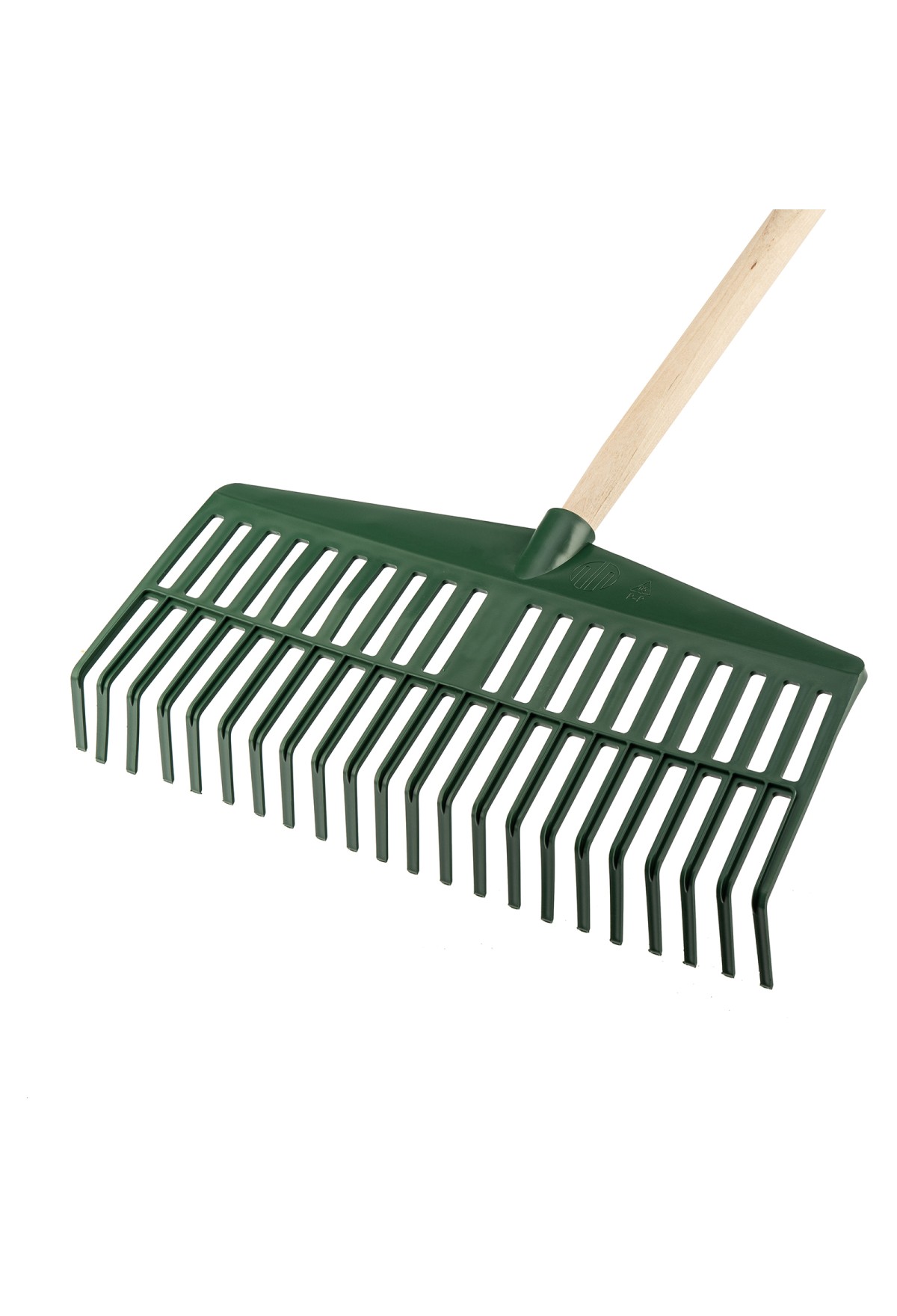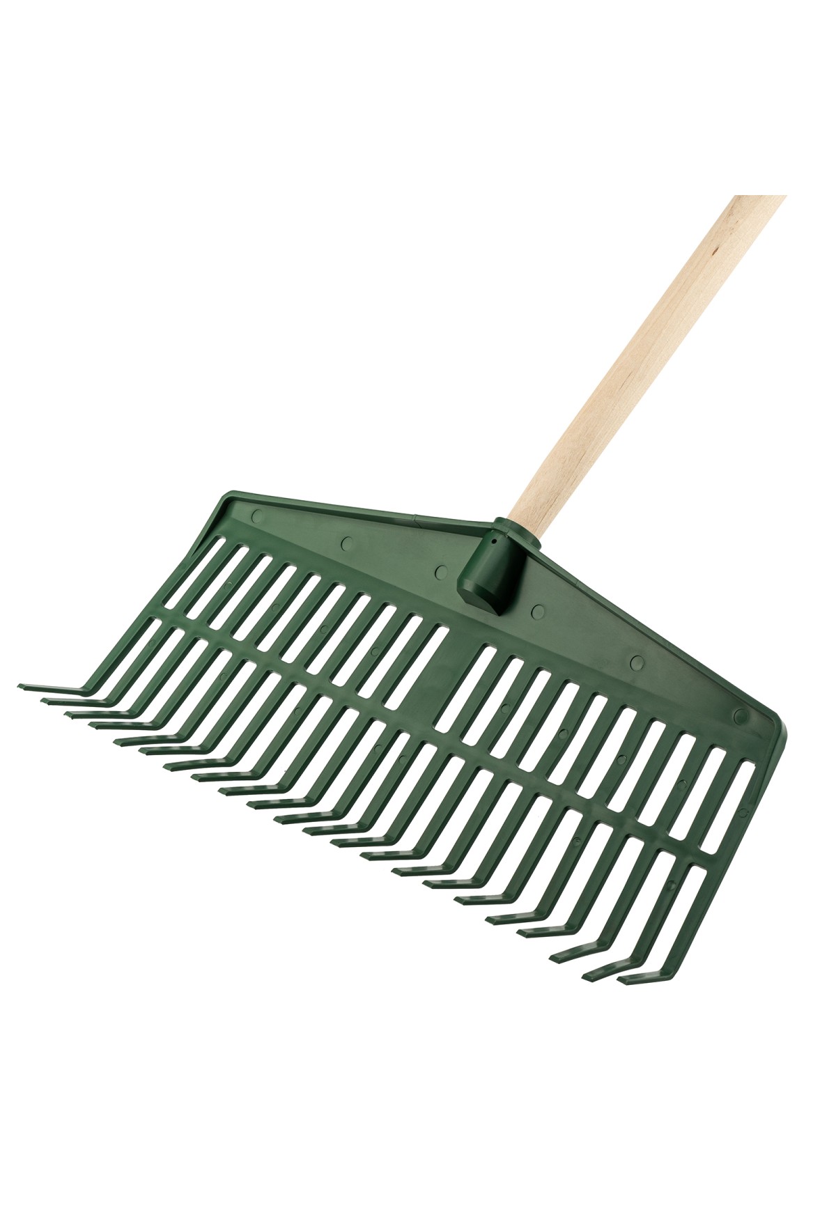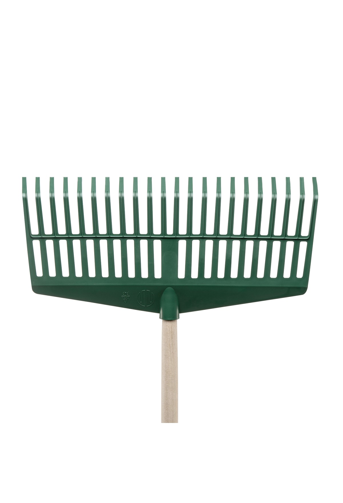 - Долговечность — грабли произведены из эластичного полипропилена, устойчивого к влаге и ультрафиолету, черенок — из древесины твердых пород.