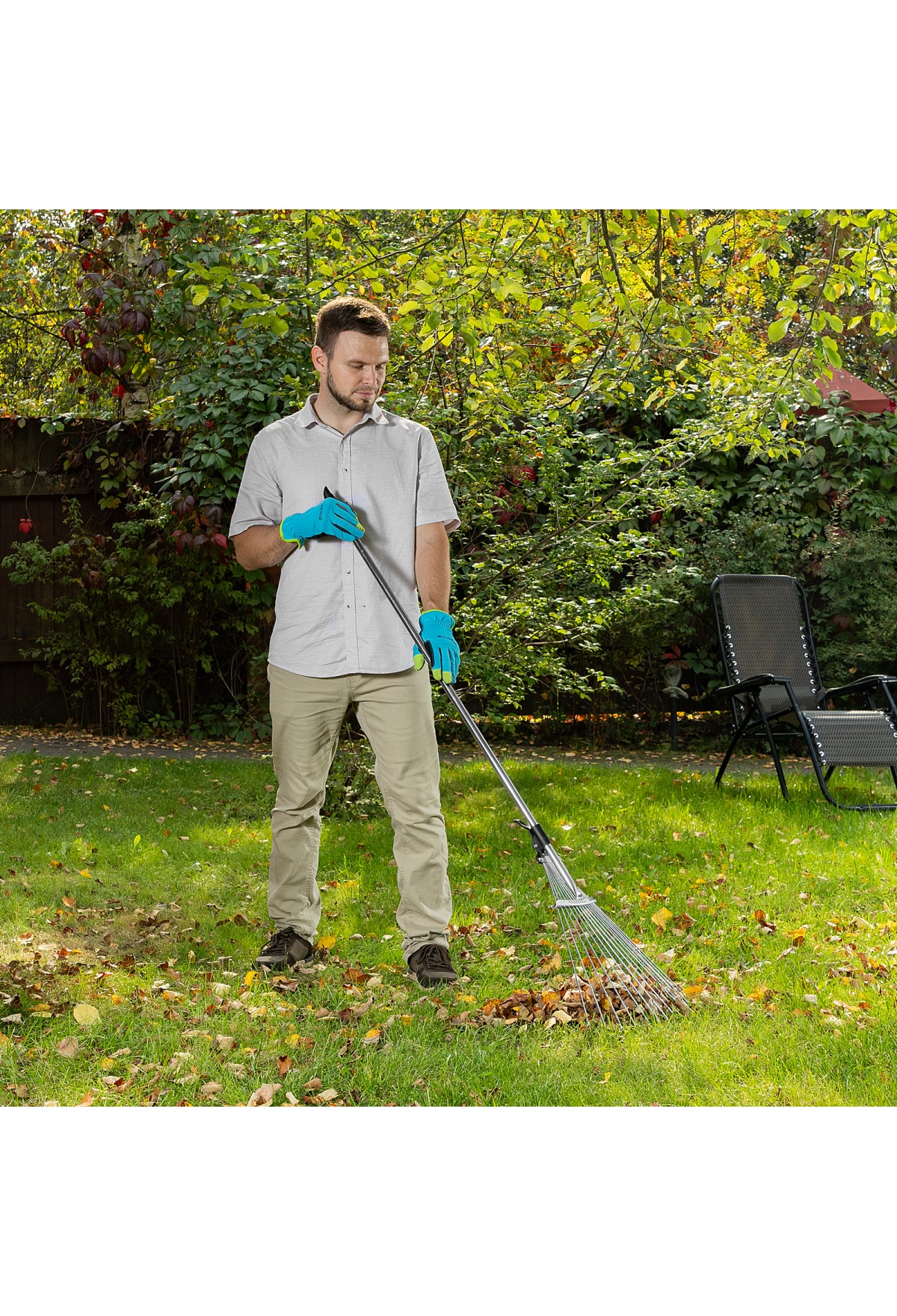 Веерные стальные грабли Palisad 6175655 размером 190-520 х 1200-1500 мм, раздвижные, с 15 зубьями и стальным черенком, пригодятся для работы на дачном участке. Используются для уборки веток, мусора, опавших плодов с газонов и грядок.