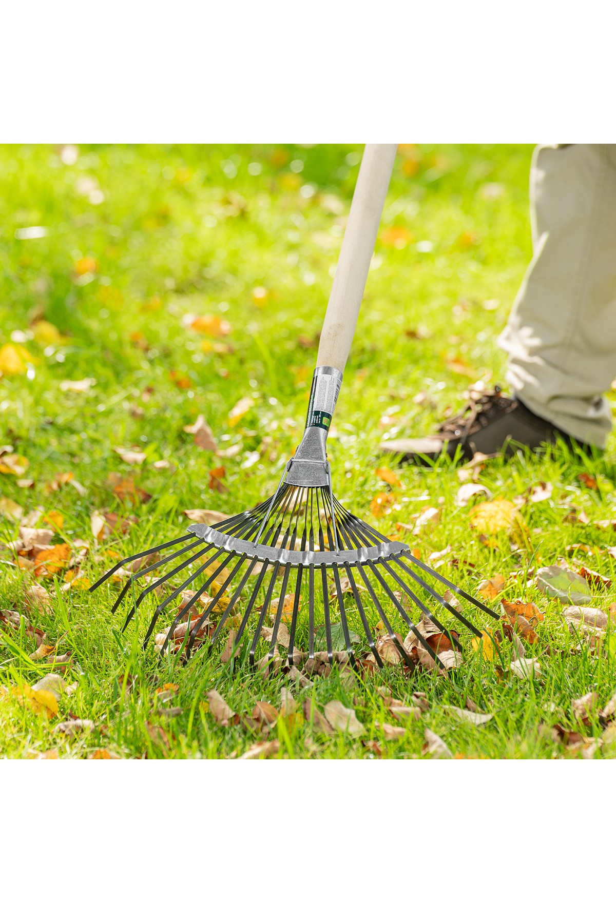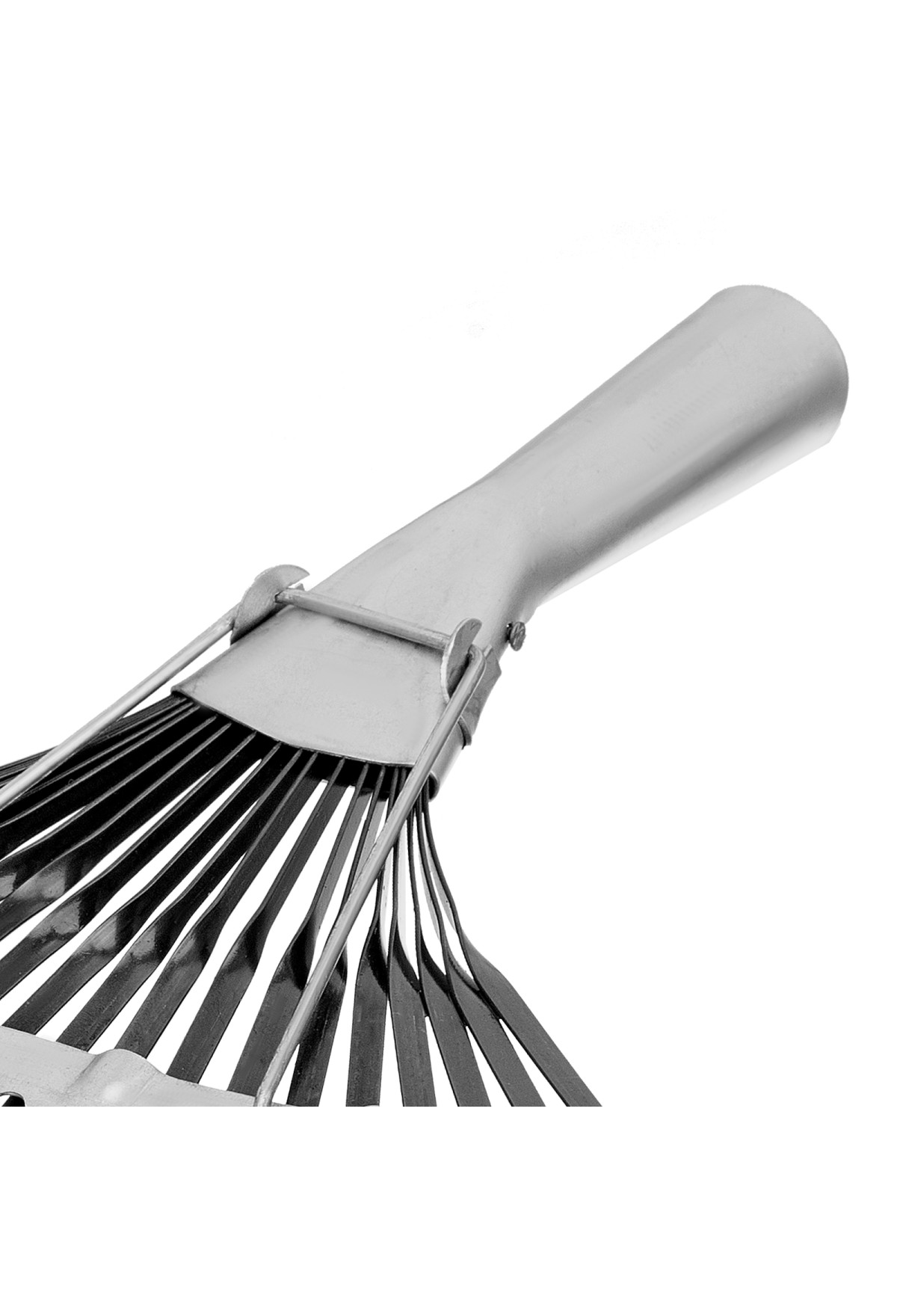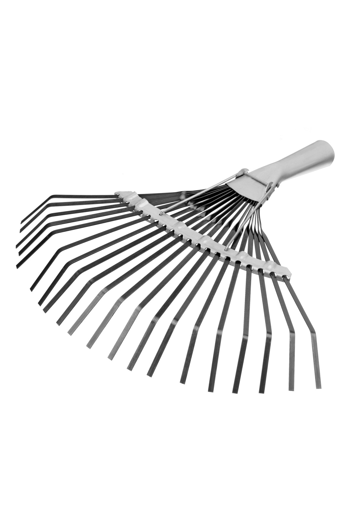 Веерные стальные грабли Сибртех 61778 с 20 плоскими зубьями, шириной 385 мм, оксидированные, без черенка, предназначены для работы на садовом участке. С их помощью удобно убирать мусор, листву и ветки с лужаек и грядок. Грабли можно установить на любой удобный черенок диаметром 25 мм.