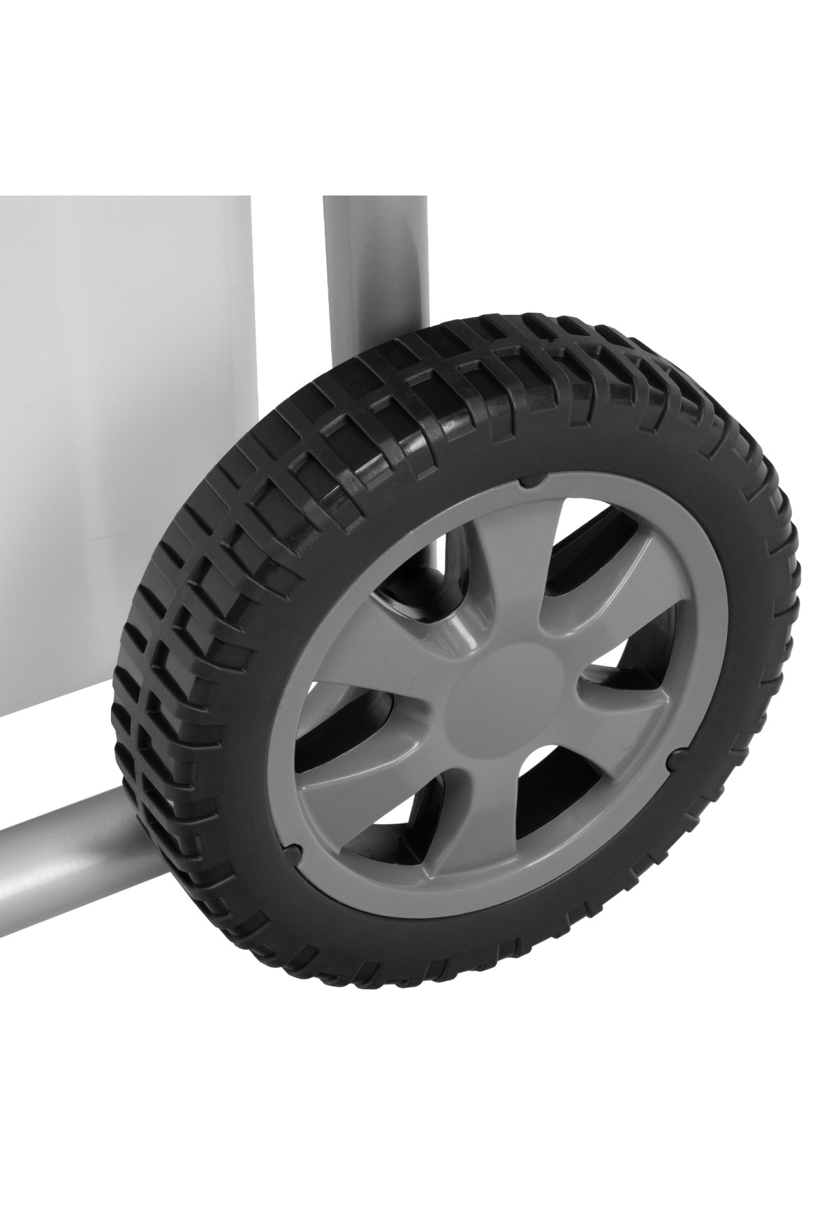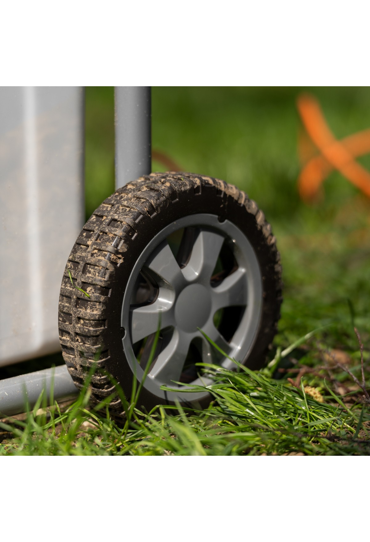 • Маневренность — для удобного перемещения по участку измельчитель оснащен колесами и ручкой.