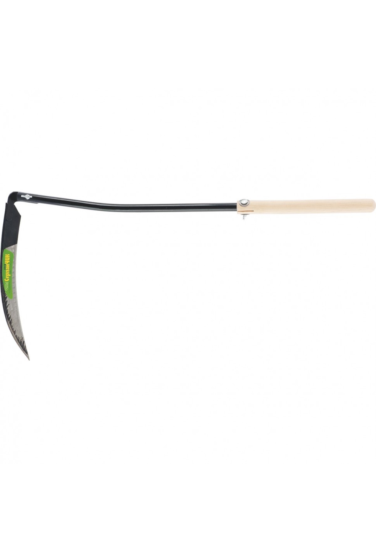 Коса-серпан АРТИ «СерпанЧик» 63568 с длиной лезвия 385 мм, металлическим косовищем и деревянной рукояткой, предназначена для срезания переросшего травостоя с толстыми стеблями, небольших кустарников и молодых побегов деревьев. Инструмент успешно справляется с этой задачей благодаря широкому, короткому лезвию. Также коса будет полезна в борьбе с сорняками, в том числе с борщевиком. В дополнение к инструменту рекомендуется приобрести точильный брусок для придания остроты отбитому и оправленному лезвию — например, Сибртех 76425.
