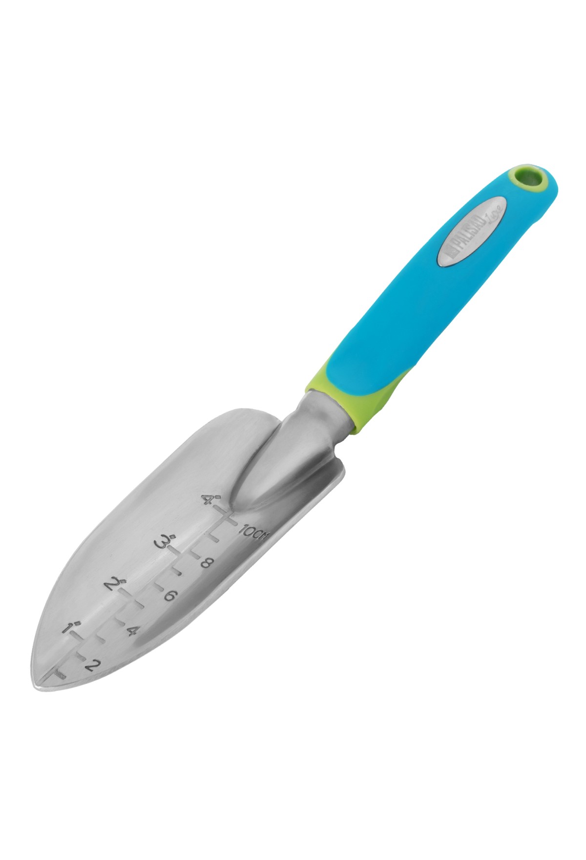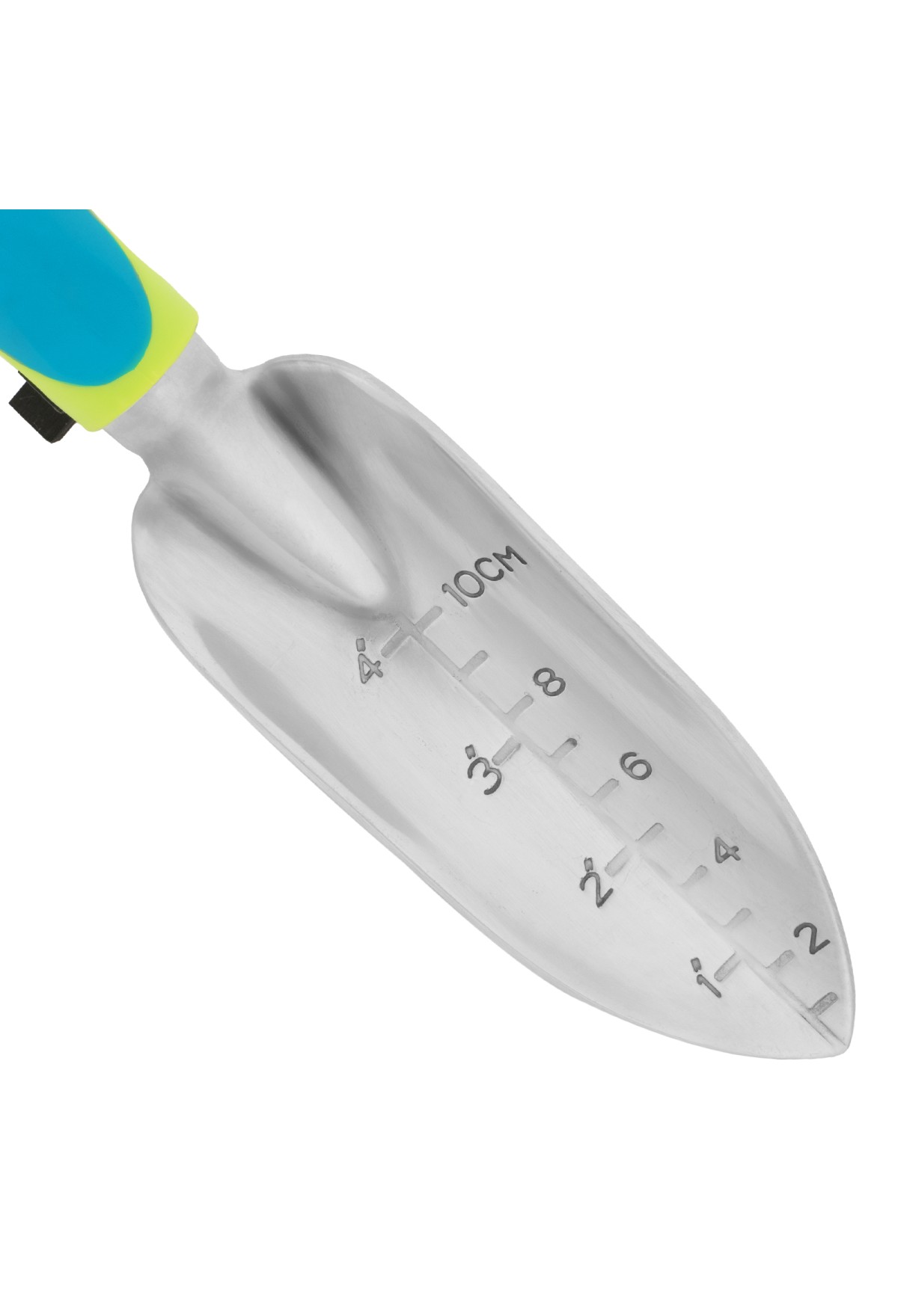 - Удобная эксплуатация — на рабочей части совка имеется мерная шкала, позволяющая контролировать глубину погружения в почву, зубья рыхлителя с заостренными кончиками легко проникают в грунт.