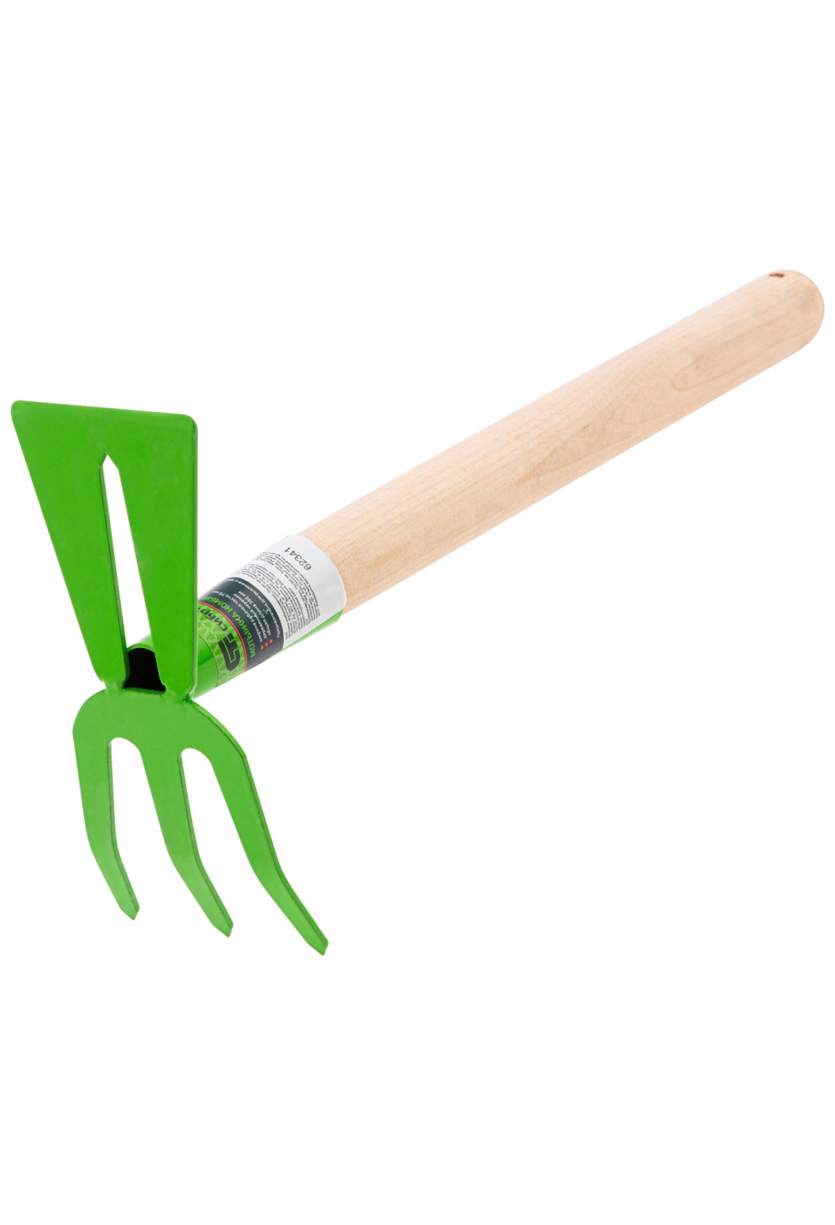 Комбинированная стальная мотыжка Сибртех АГРОНОМ 62341 длиной 380 мм, с деревянной рукояткой, имеет рабочую часть шириной 75 мм и используется для обработки почвы на небольших участках. Рабочая часть представляет собой сочетание трапеции и трезубца. Трапециевидная часть пропалывает землю, срезая сорняки. Заостренные зубья разбивают земляные комочки, обеспечивая эффективную аэрацию почвы. Инструмент идеально подходит для ухода за клумбами и грядками.