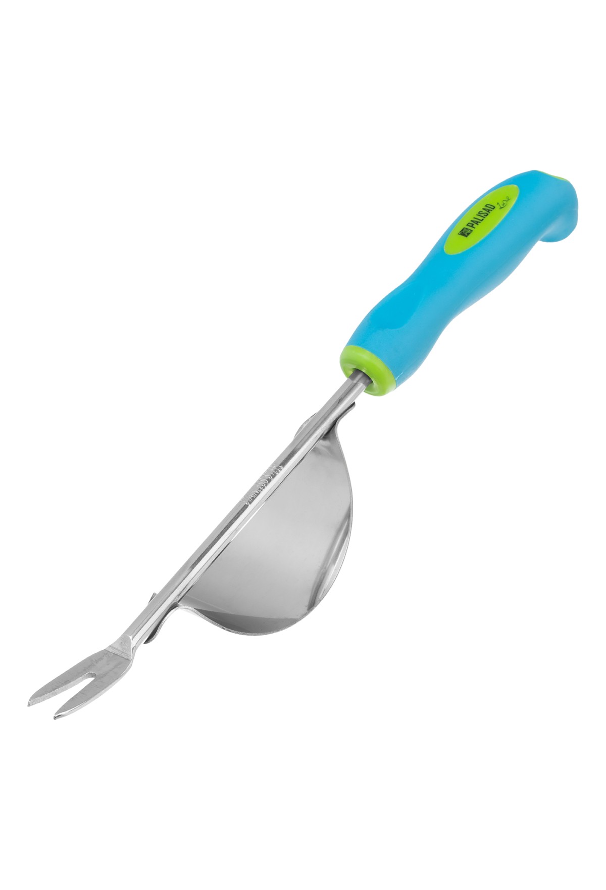 - Продуманная конструкция — заостренный раздвоенный наконечник легко проникает в грунт и захватывает сорняк с корнем, а полукруглый упор позволяет без труда извлечь его из почвы, не повредив культурные растения.
