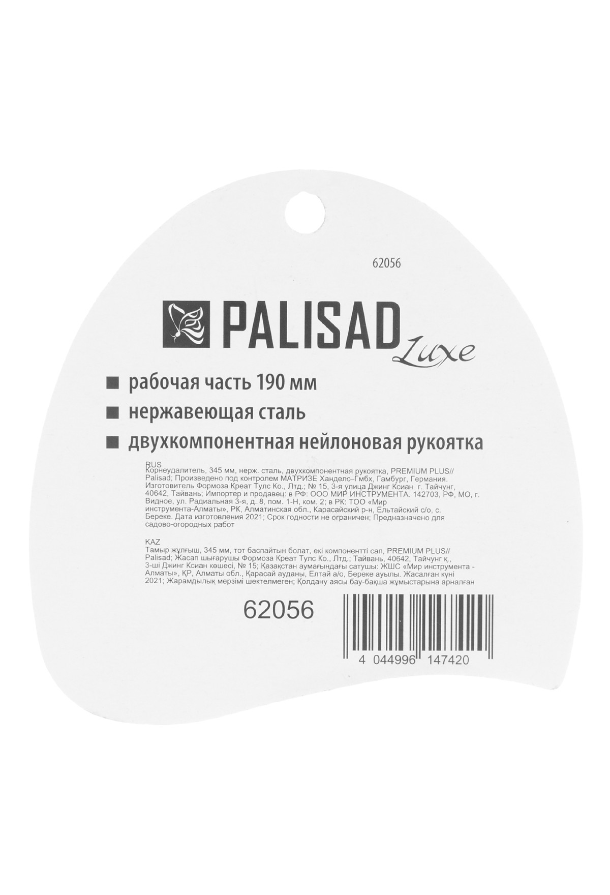 Технические характеристики Корнеудалитель, 345 мм, нержавеющая сталь, двухкомпонентная рукоятка, Premium Plus, Palisad