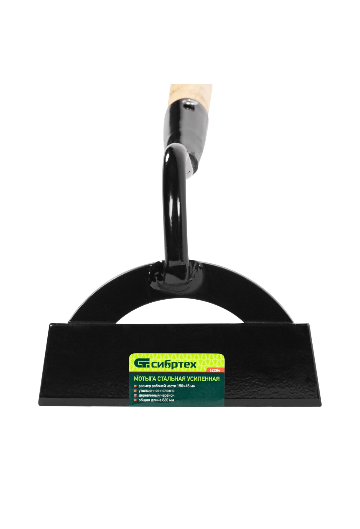 Стальная усиленная мотыга Сибртех 62284 размером 150 х 45 х 860 мм, с деревянным черенком, — ручной инструмент для рыхления и прополки почвы, окучивания растений. Поставляется в сборе со шлифованным черенком из древесины твердых пород, обеспечивающим комфорт во время работы. Длина черенка 860 мм, поэтому мотыга очень удобна для работы в тесном пространстве, например, в парнике или теплице. Инструмент будет полезен владельцам дачных участков.
