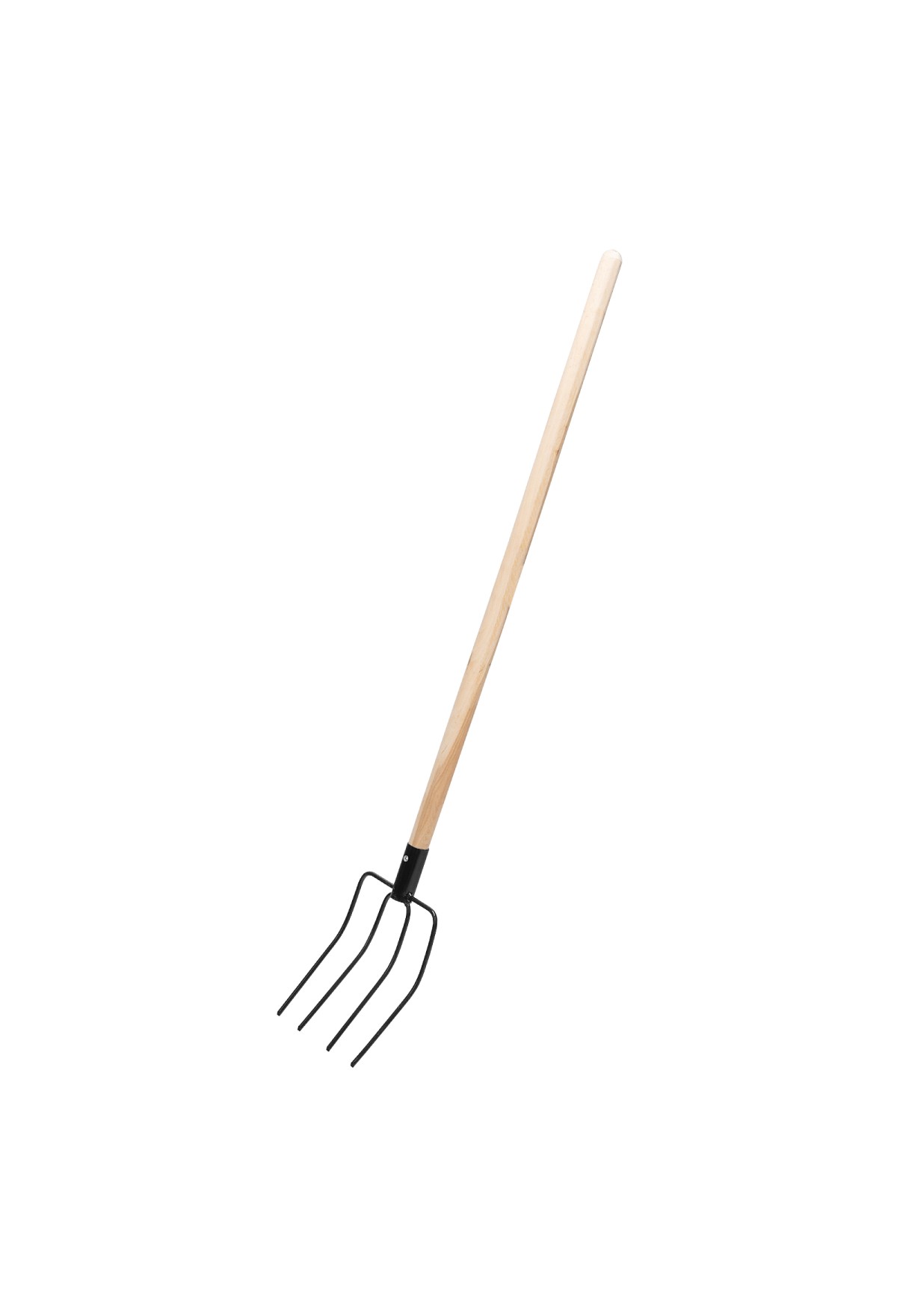 • Комфортная работа — деревянный черенок обеспечивает удобный хват, а рога с острыми концами надежно захватывают траву и сено.