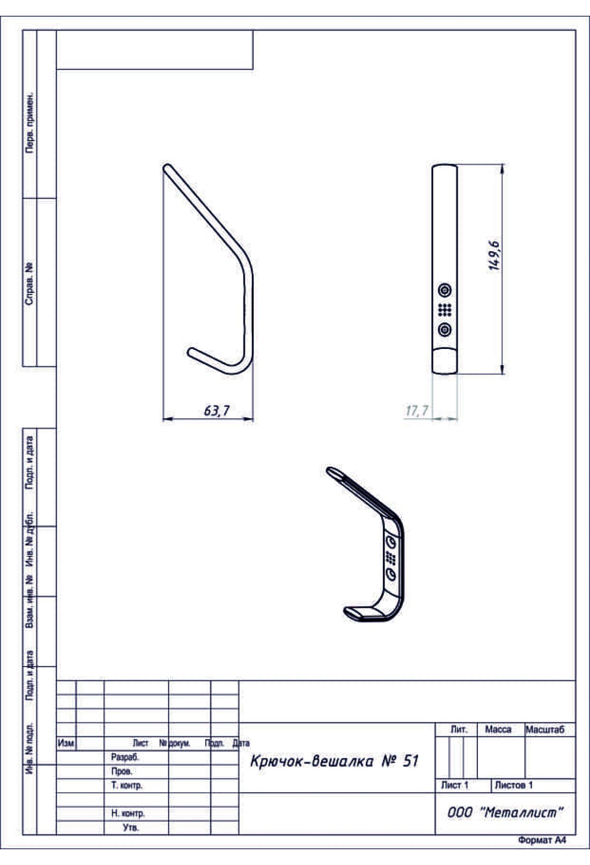 КРЮЧОК-ВЕШАЛКА №51 (50 шт.) от 98.41 руб с доставкой в интернет-магазине завода «Металлист». Качественная продукция. Выгодные цены. Продукция от производителя. 50 шт. в коробке