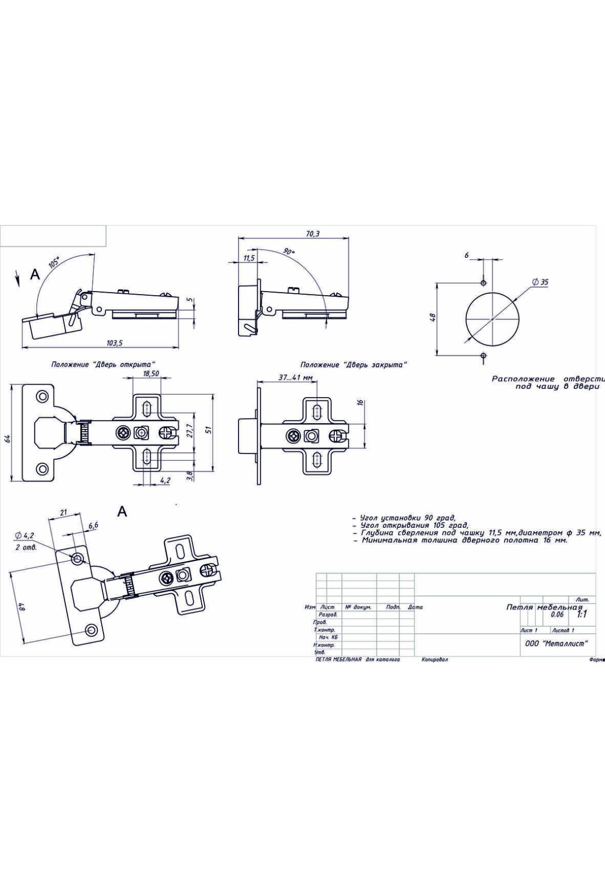 Мебельная 4-х шарнирная петля с доставкой в интернет-магазине завода «Металлист». Качественная продукция. Выгодные цены. Продукция от производителя. 70 шт. в коробке