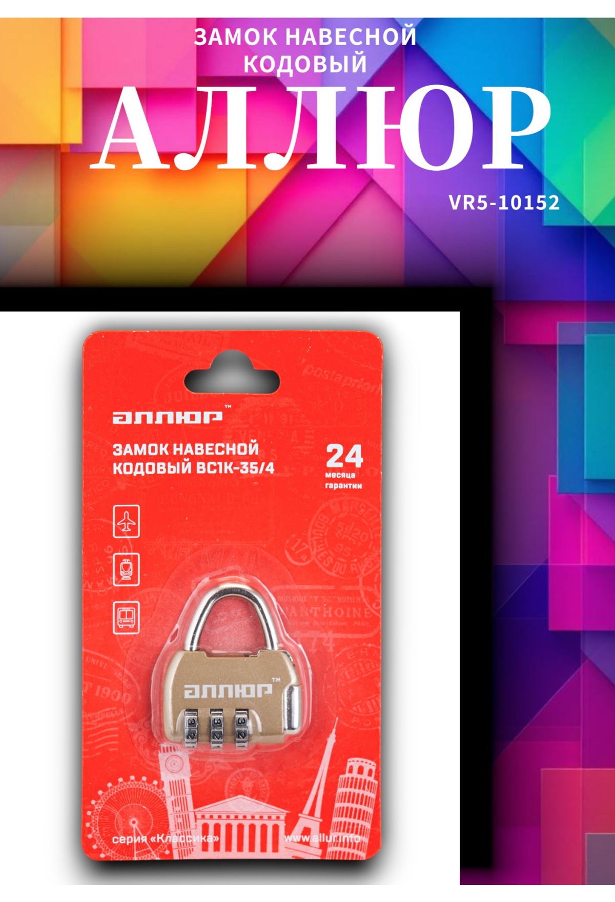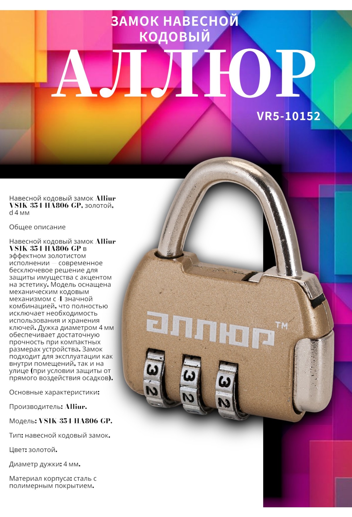 навесной кодовый замок Alliur VS1K‑354‑HA806‑GP — 1 шт.;