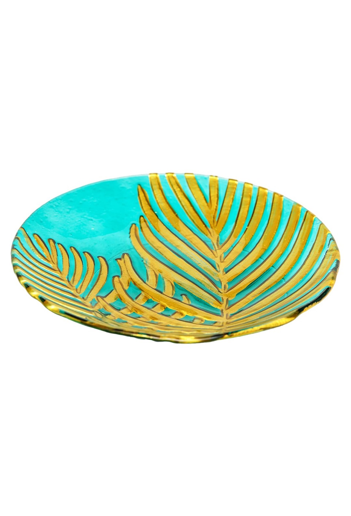 Блюдо стеклянное круглое Лист, D305, зеленый, золотой
