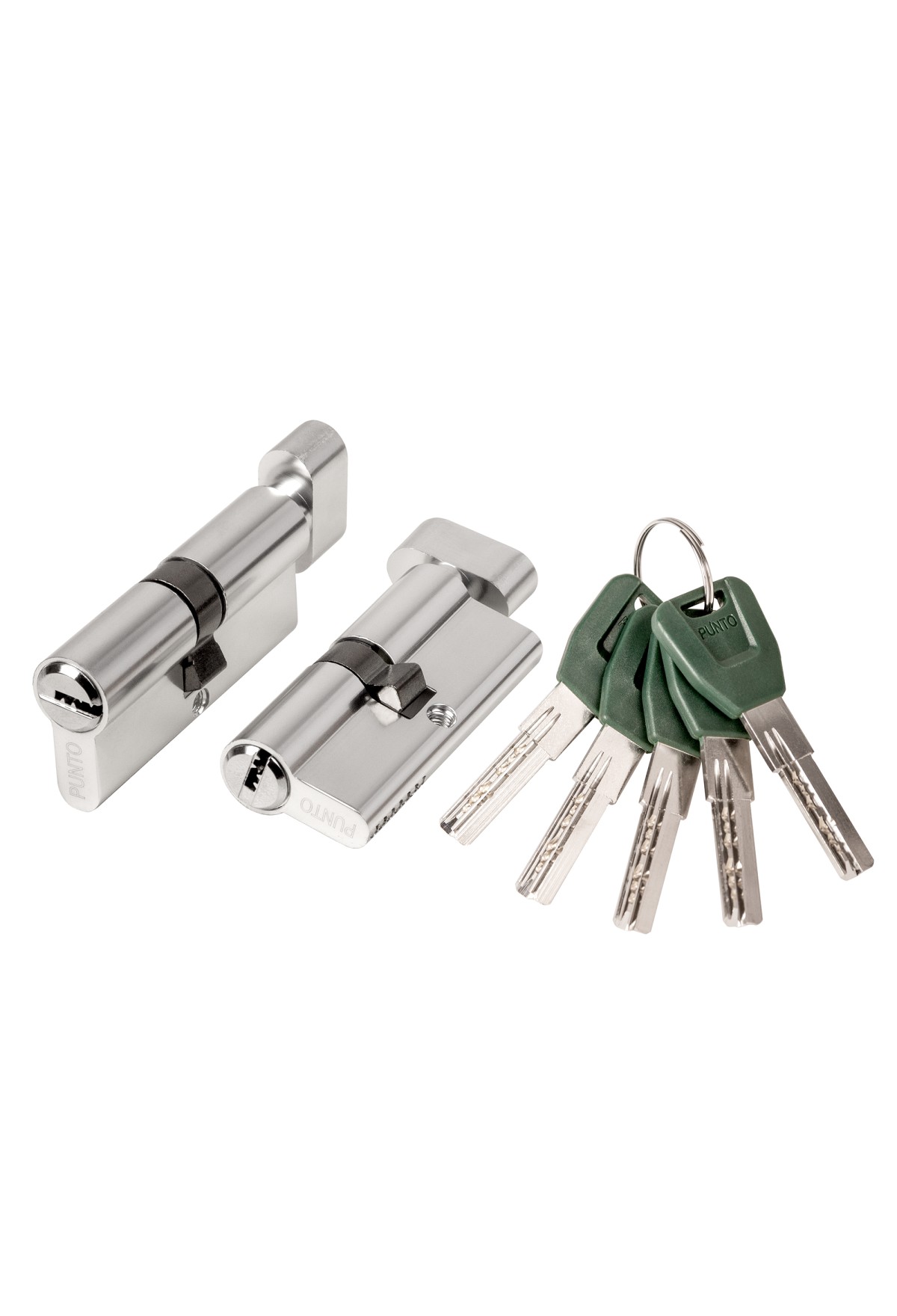 Цилиндровый механизм Punto коллекции SIMPLE LIVING A202 предназначен для установки в корпуса врезных цилиндровых замков для всех типов дверей. Вариант исполнения: ключ-вертушка. Тип ключа: "перфорированный". Материал изготовления цилиндра: алюминий. Материал изготовления ротора: латунь. Количество пинов: 7. Секретность более 78 000 комбинаций. Работоспособность более 100 000 циклов открывания/закрывания. Размер: 80 мм. Цвет: матовый никель. Комплектация: 5 латунных ключей с пластиковой головкой, крепежный винт 60 мм. Упаковка: картон.