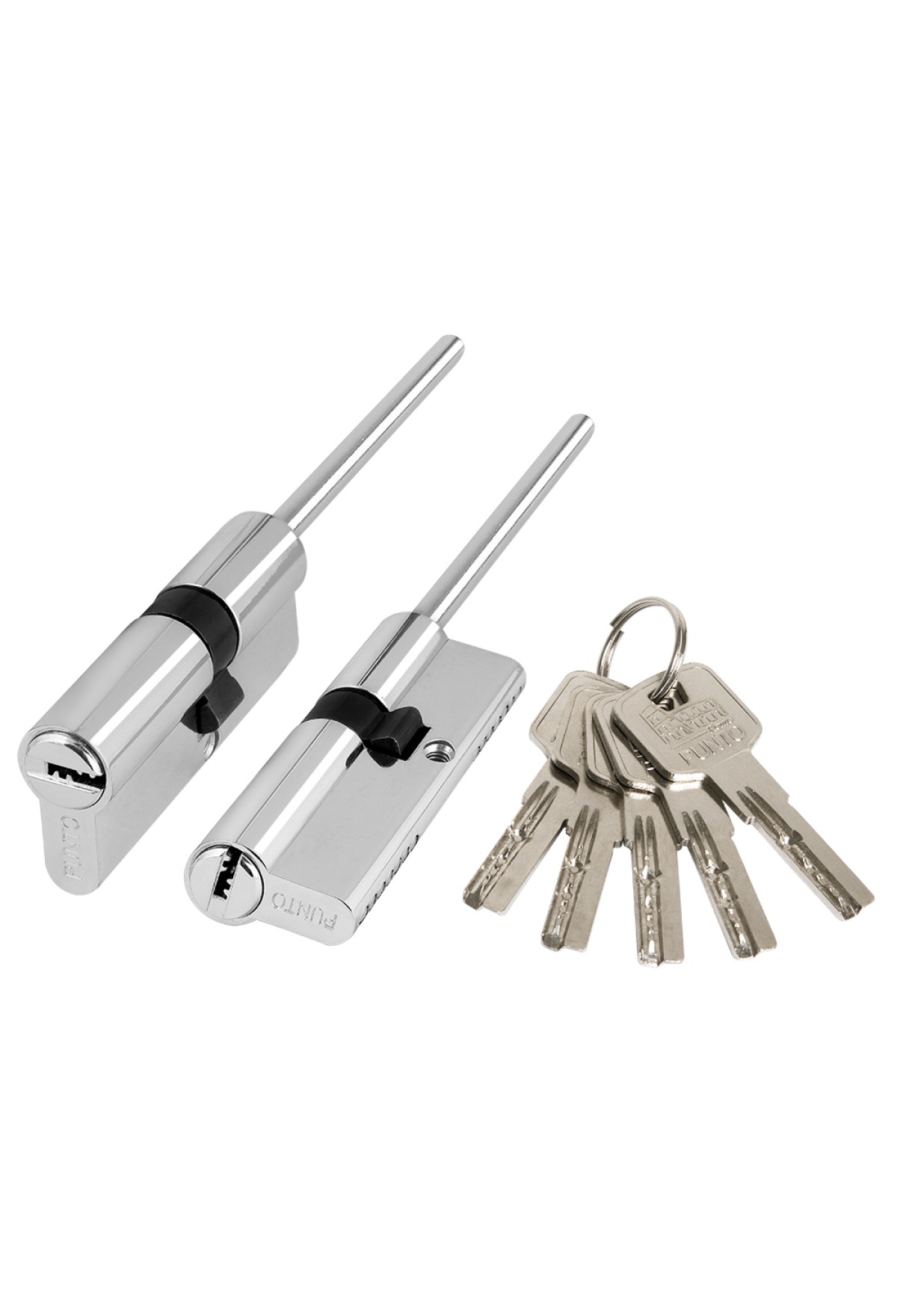Цилиндровый механизм Punto коллекции ROME предназначен для установки в корпус врезных цилиндровых замков для всех типов дверей. Наличие проточек на штифтах данного цилиндра препятствует вскрытию замка отмычками. Вариант исполнения: ключ-шток. Вертушка в комплект не входит и приобретается отдельно. Тип ключа: "перфорированный". Материал ключа: сталь. Материал цилиндра: цинк. Материал ротора: цинк. Количество пинов: 6. Секретность: более 5 000 комбинаций. Работоспособность: более 200 000 циклов открывания/закрывания. Размер штока: 65 мм. Цвет: хром. Комплектация: 5 ключей, крепёжный винт. Упаковка: картонная коробка.