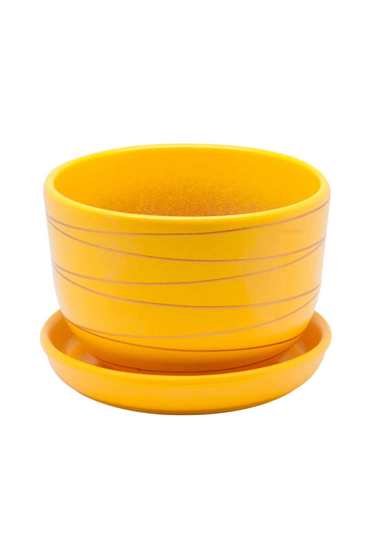 Керамический горшок с подставкой, 1, 05л., Д145 Ш145 В106, желтый