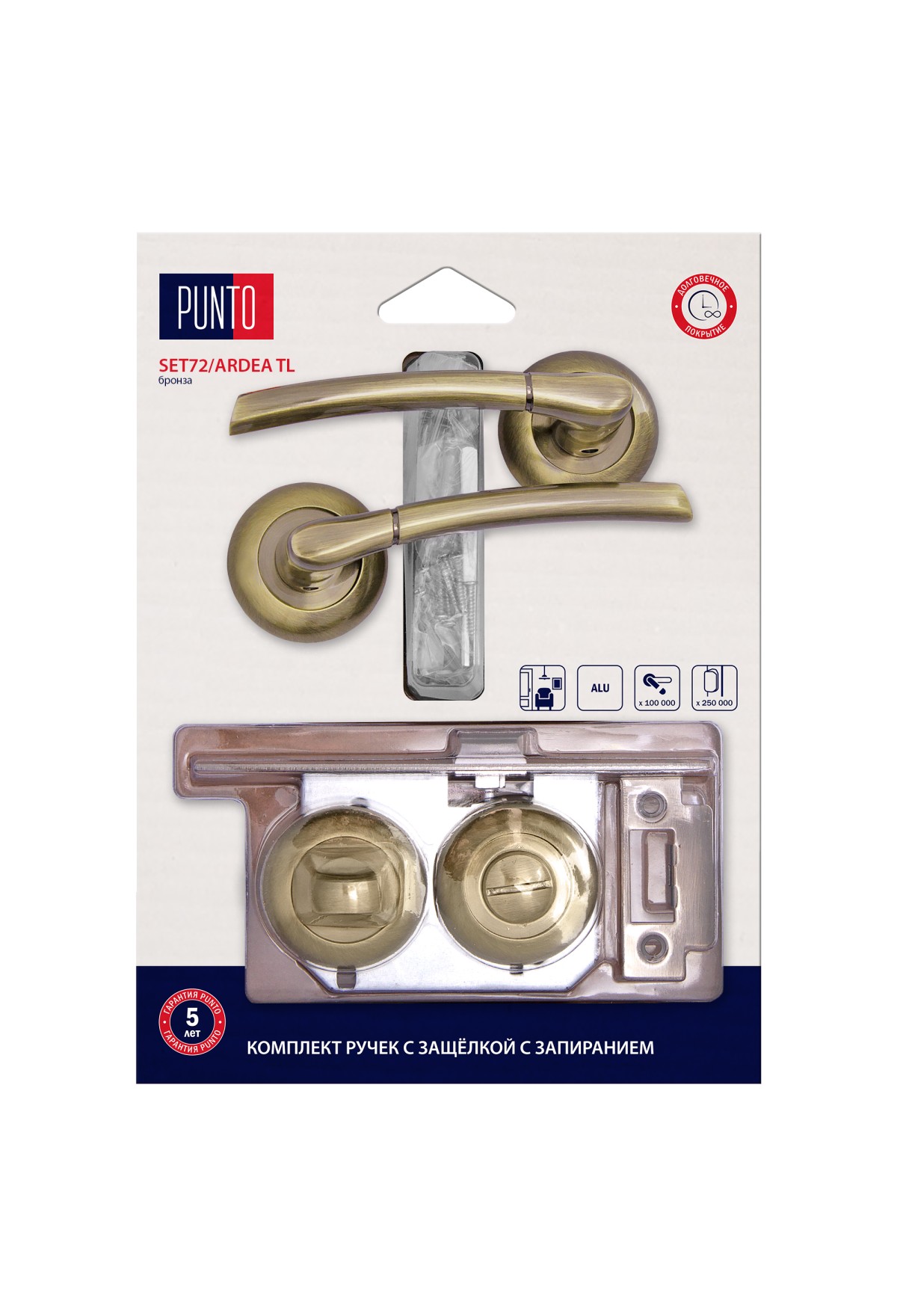 Технические характеристики Комплект ручек Punto (Пунто) с защелкой c запиранием LM/A SET72R.TL54.ARDEA/HD ABG-6 бронза