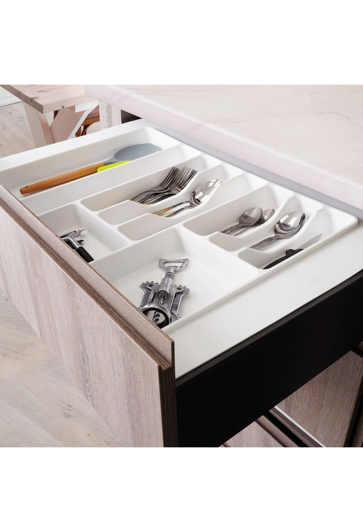 Универсальный обрезной лоток для столовых приборов в ящик корпуса 700/800мм. Насечки с трех сторон: по ширине разметка 725, 710, 625, 610мм по глубине 424, 434,444, 454,464, 474, 485мм. Выполнены из ударопрочного экологичного полипропилена. Не имеют запаха. Выпускаются на собственном производстве. Каждое изделие имеет маркировку партии для контроля качества. Оптимальное решение для организации пространства в ящике. Стильные и продуманные емкости для столовых приборов с матовой бархатистой поверхностью, кроме приятных тактильных ощущений, гарантируют отличные эксплуатационные характеристики и снижение уровня шума. С обратной стороны поверхности нанесена линия реза по типовым размерам ящика. Изделия не требует специального ухода их достаточно протирать влажной тряпкой, губкой или легко вымыть водой.