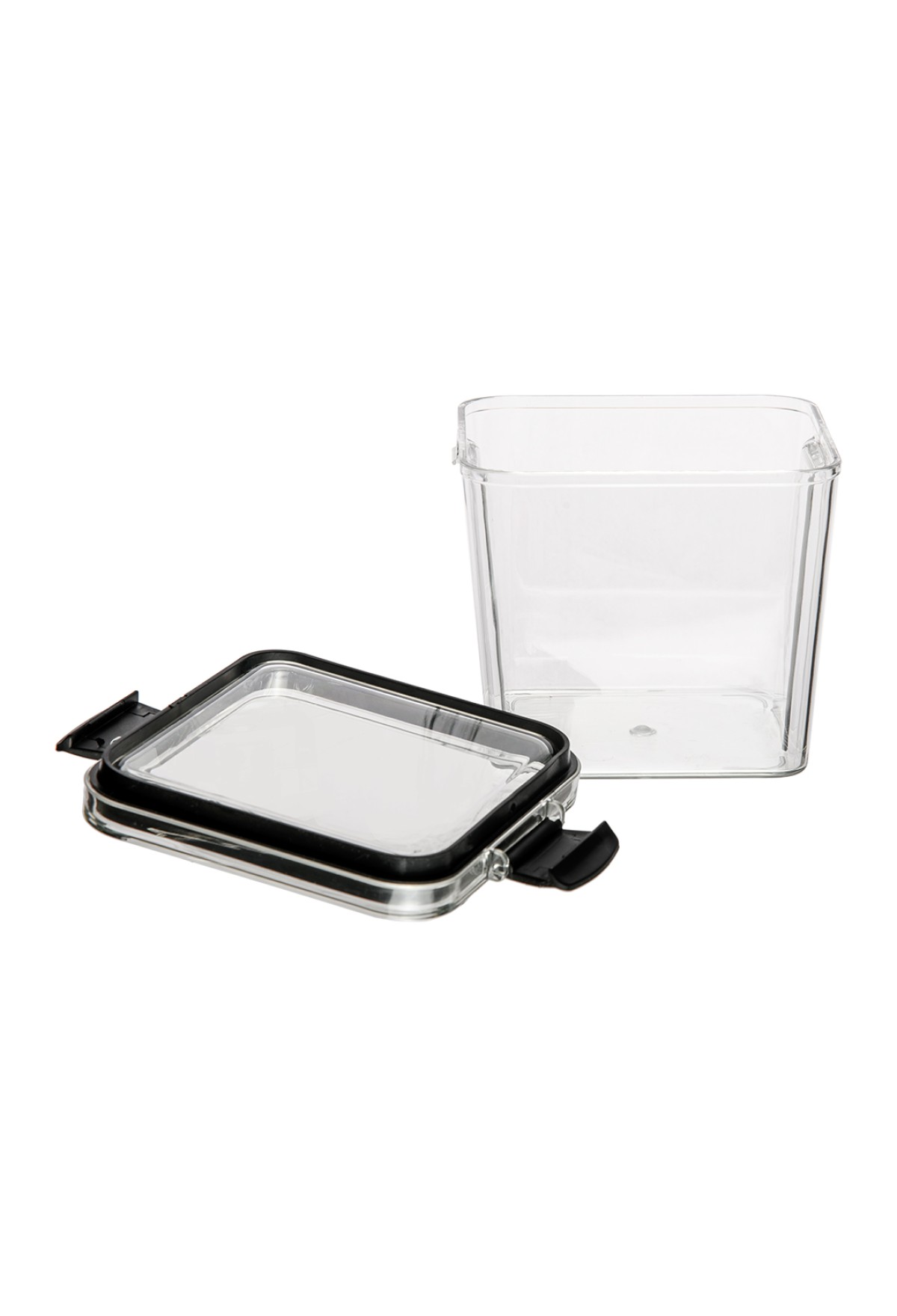 Контейнер высотой 9,5 см с крышкой «два замка» размером 9х9 см изготовлен из прочного прозрачного пластика. Такие ёмкости для хранения не впитывают запахи, легко моются и очень удобны с точки зрения наблюдения за количеством содержимого, чтобы вовремя пополнить запасы.