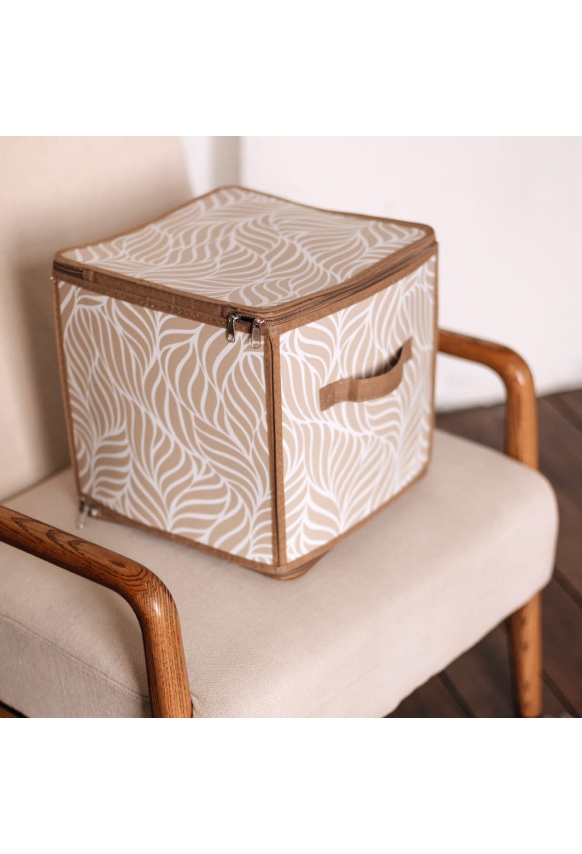 • Короб складной на молнии "Листья", Д300 Ш300 В300, бежевый