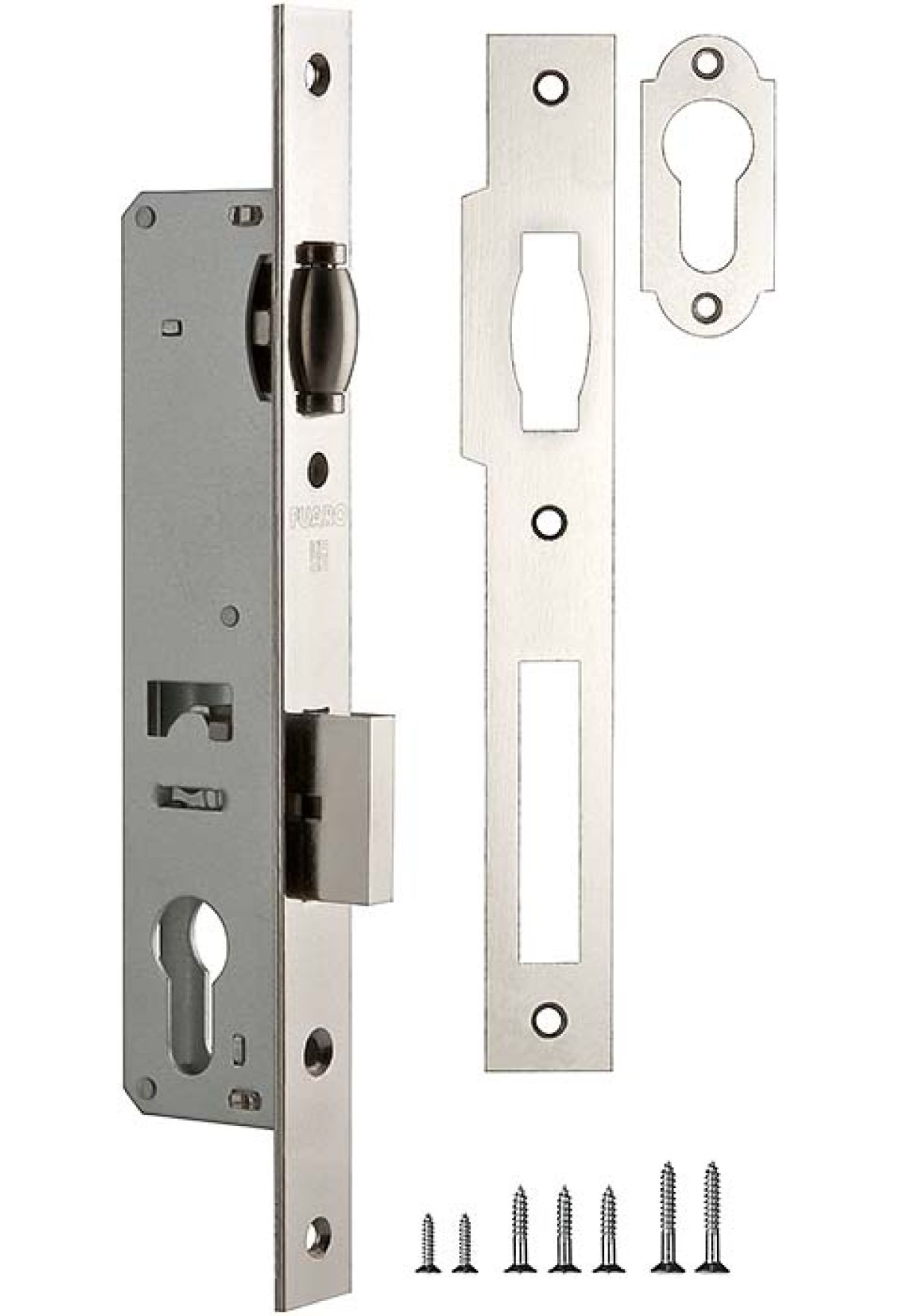 Корпус узкопрофильного замка Fuaro 155-25 с роликом предназначен для установки в алюминиевые и пластиковые входные двери. Регулируемый ролик. Корпус узкопрофильного замка подходит для дверей правого и левого открывания. Стальной оцинкованный корпус с отверстием под евроцилинд. Лицевая планка с гальваническим покрытием матовый хром. Ширина лицевой планки 23 мм. Размер бэксета 25 мм. Ответная планка и крепежная фурнитура в комплекте.