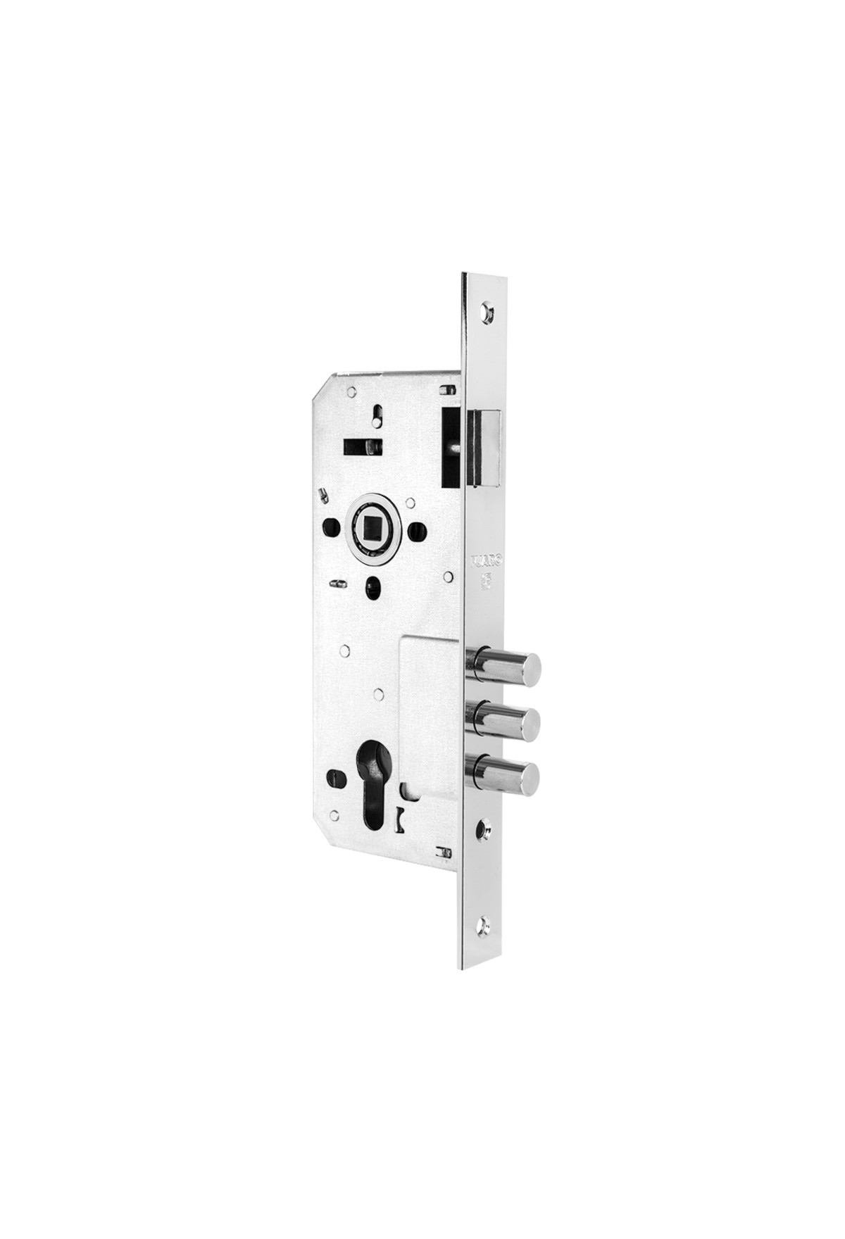 Корпус врезного цилиндрового замка Fuaro 900-3MR W/B с тремя ригелями. Подходит для установки на деревянные входные и межкомнатные двери. Универсальная защелка, для левых и правых дверей. Вылет ригеля: 20 мм. Межосевое расстояние: 85 мм. Бэксет: 45 мм. Ширина лицевой планки: 23 мм. В комплектацию входят: ответная планка, винт для евроцилиндра 70 мм. Цвет: хром.