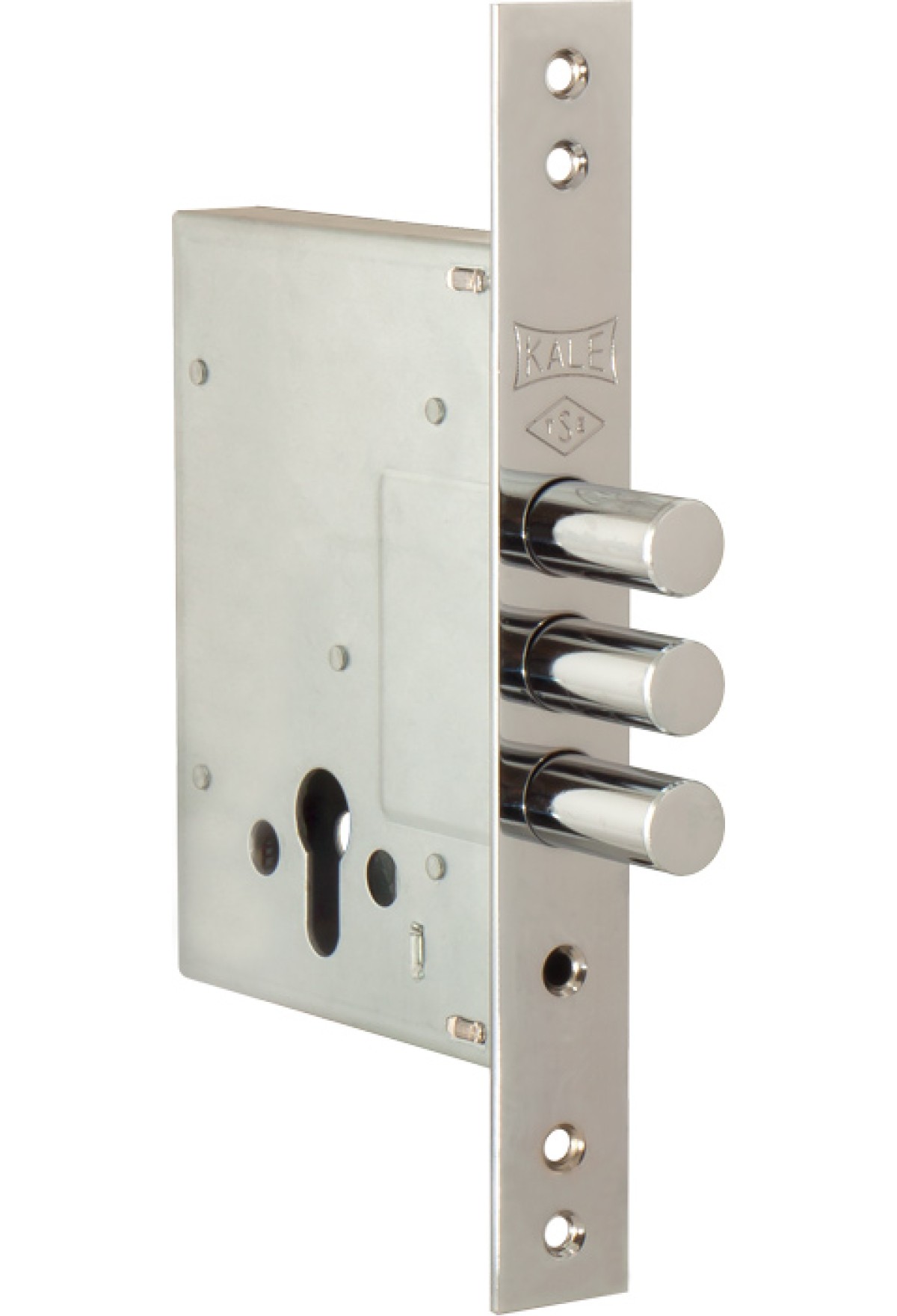 Kale 257 w/b Замок врезной цилиндровый для металлических дверей, дополнительный, цвет лицевой планки-никель. Корпус замка будет иметь высший уровень защиты при комплектации цилиндром 4 уровня безопасности. Рекомендуется устанавливать на дверь в паре с сувальдным замком.