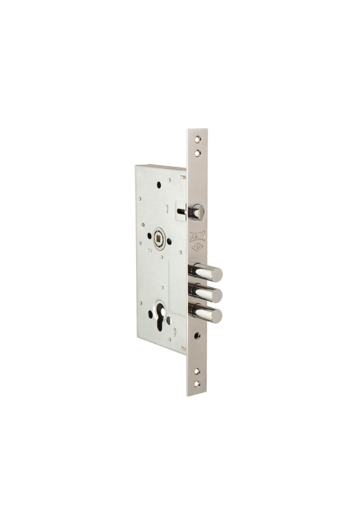 Kale 252/R w/b Корпус замка врезного цилиндрового для металлических дверей с верхней реверсивной защелкой, оснащен подшипником под ручку для плавного хода. Цвет лицевой планки-никель. Корпус замка будет иметь высший уровень защиты при комплектации цилиндром 4 уровня безопасности. Рекомендуется устанавливать на дверь в паре с сувальдным замком.
