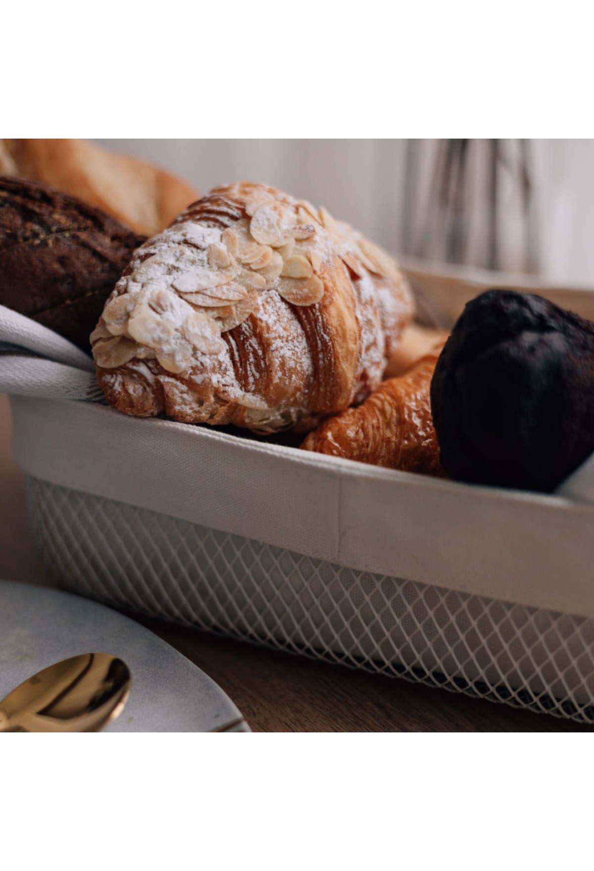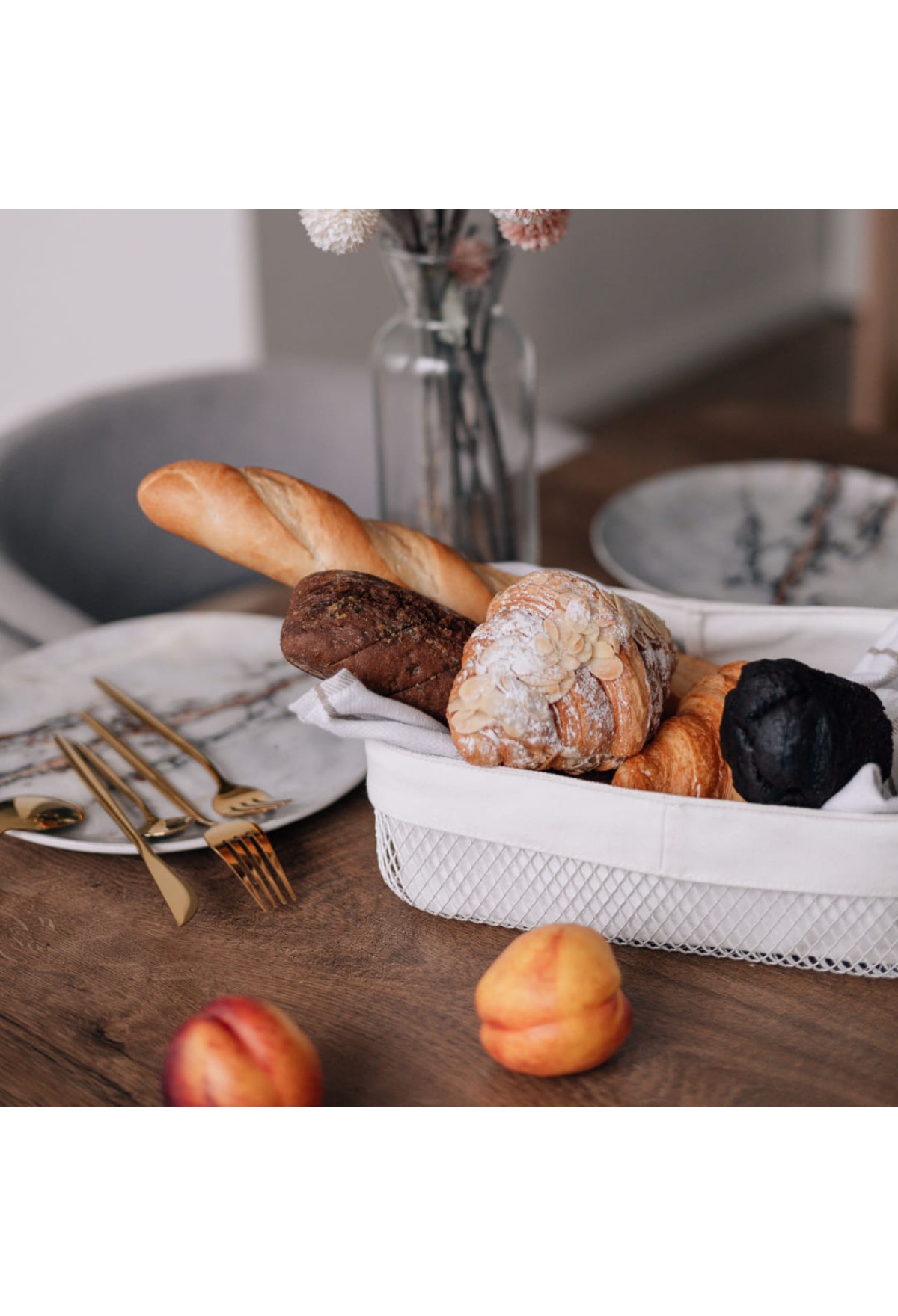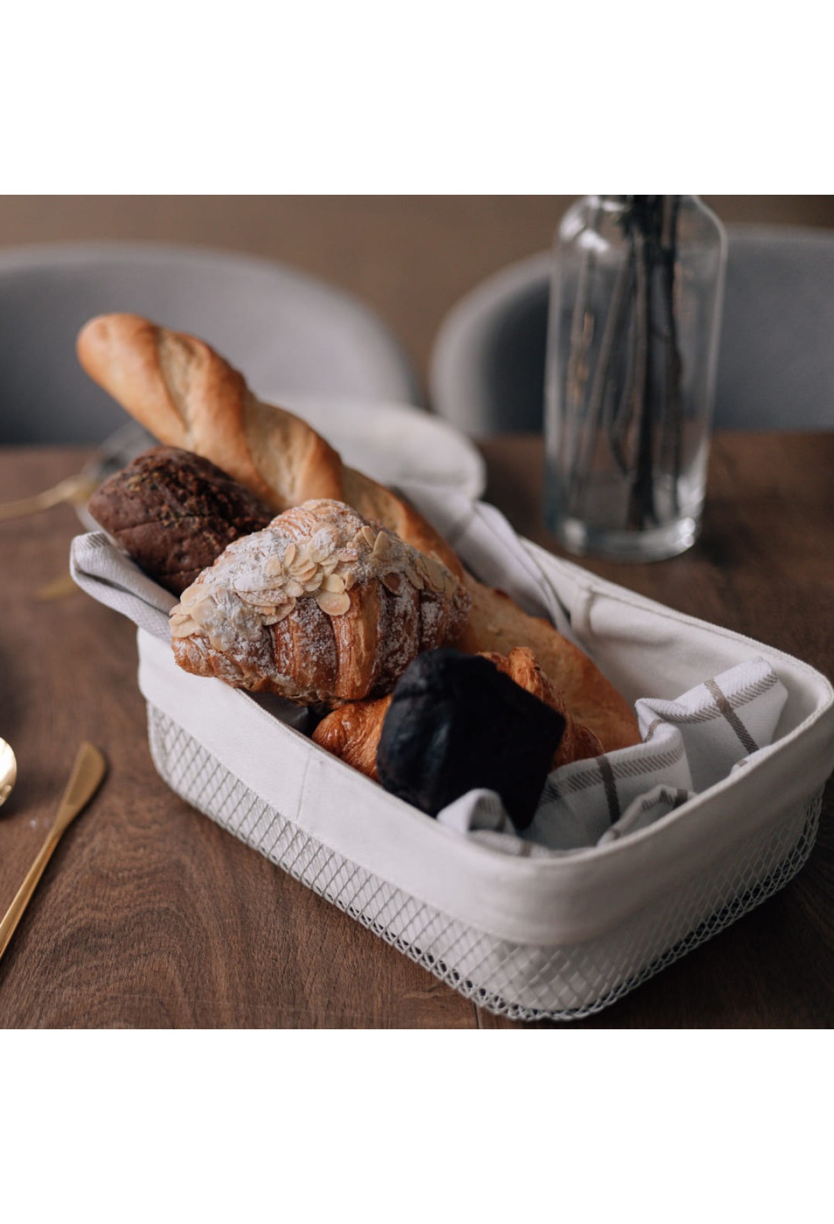 Хлебница впишется в большинство современных интерьеров. Строгая геометрия и трендовый белый цвет делают ее заметной на фоне стола или кухонного гарнитура, при этом создают контраст между ней и продуктами внутри. Такой оптический эффект окажется особенно полезен владельцам кафе и ресторанов — получится увеличить средний чек со стола. Хлебница качественно покрашена — порошковое покрытие устойчиво против жидкостей, трения и других механических воздействий. Оно же обеспечивает легкий уход за изделием — достаточно изредка протирать его влажной тканью. Внутри — съемное тканевое наполнение, которое легко стирается и меняется.