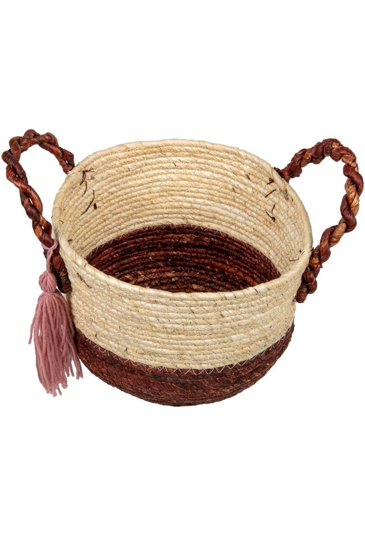 Плетеная корзина с ручками и симпатичной шерстяной кисточкой из коллекции "Южная Америка" станет отличным функциональным решением для открытого хранения вещей и разных мелочей, которые обычно некуда сложить. Прекрасное дополнение интерьера в стиле бохо и эко-бохо, кантри, фьюжн или в колониальном стиле. 100% ручная работа. При изготовлении корзины используются только натуральные материалы, прошедшие антибактериальную обработку. Материал: кукурузный лист, шерстяная веревка.