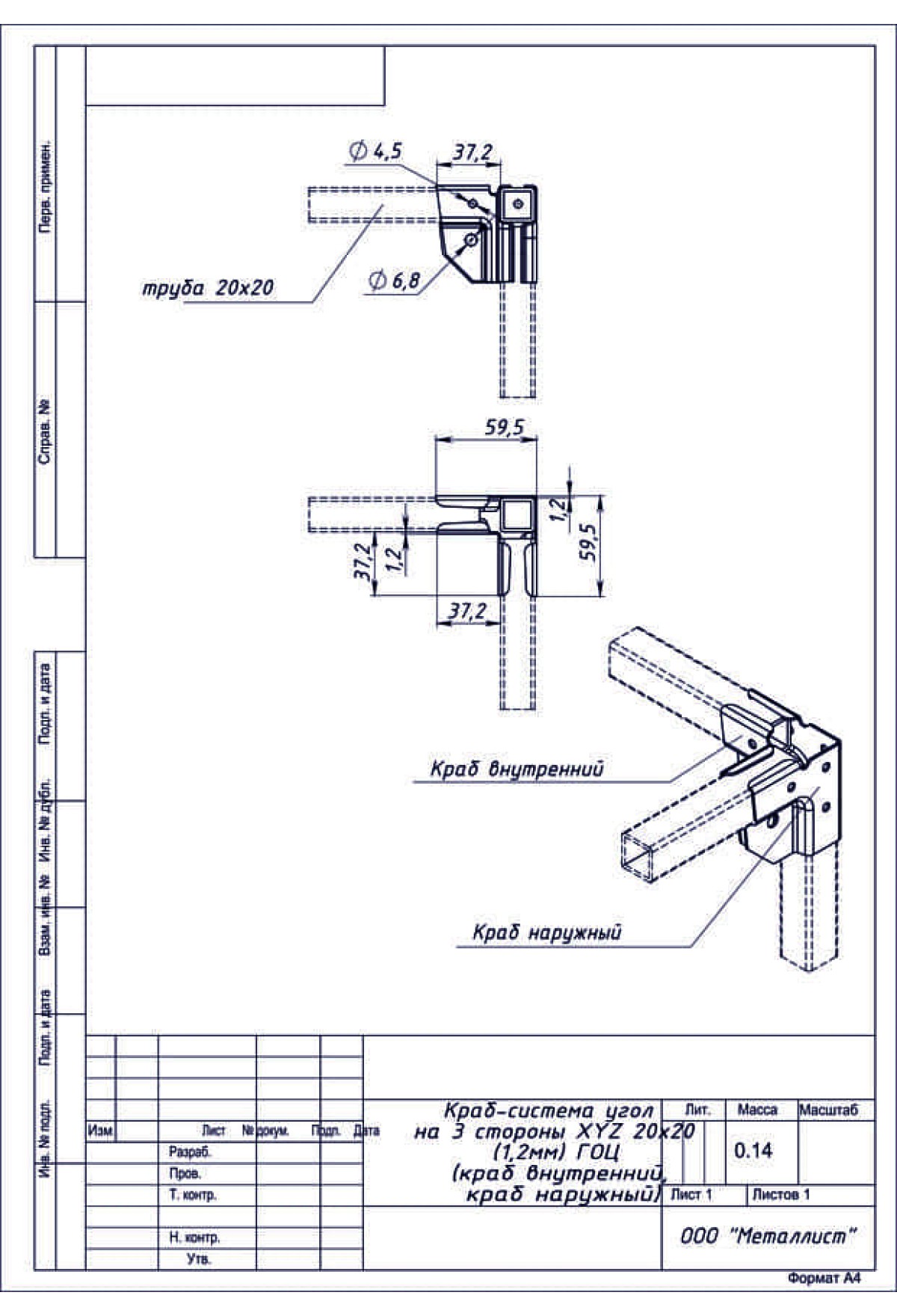КРАБ-СИСТЕМА УГОЛ НА 3 СТОРОНЫ XYZ 20*20 (1,2 мм) (20 шт.) от 32.6 руб с доставкой в интернет-магазине завода «Металлист». Качественная продукция. Выгодные цены. Продукция от производителя. 20 шт. в коробке