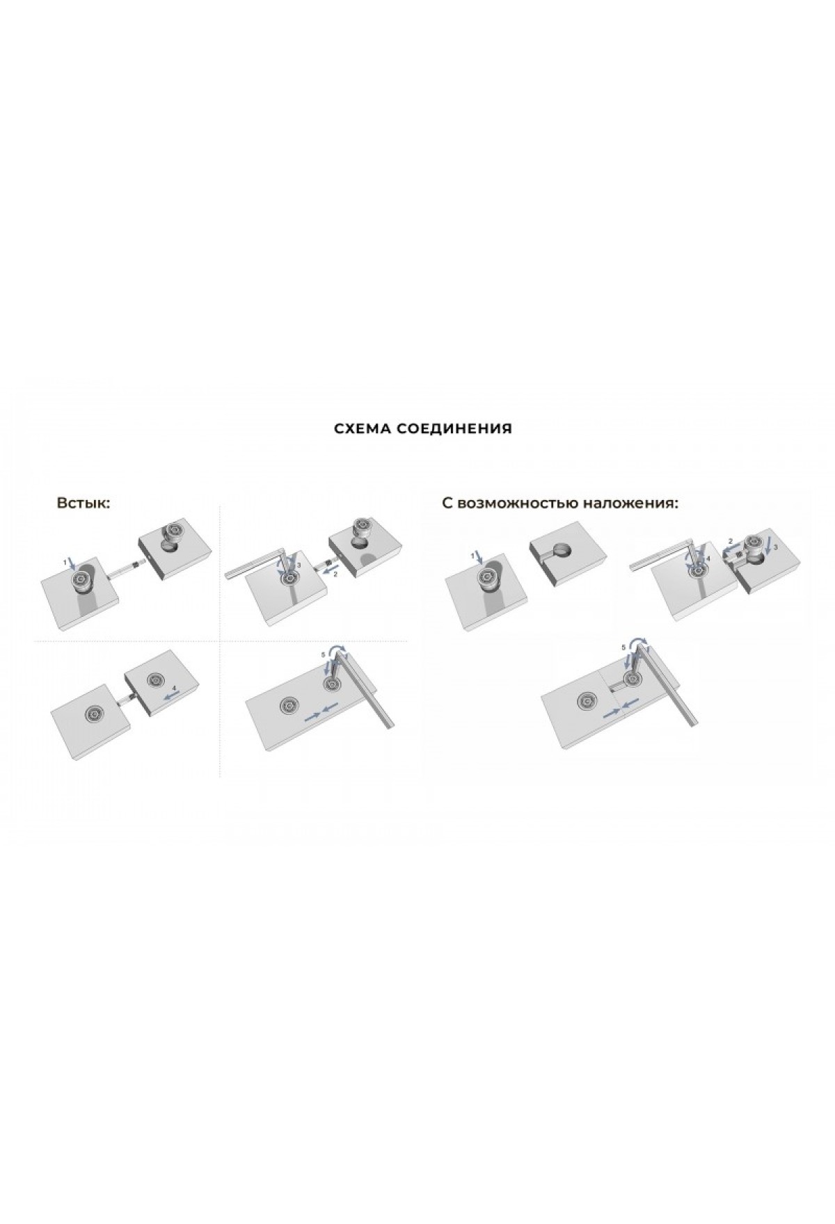 При монтаже методом встык не требуется фрезеровка пазов для дюбеля. Для установки стяжки в столешнице достаточно профрезеровать посадочные места для эксцентриков и сделать сквозное отверстие для дюбеля. При монтаже наложением сверление паза для дюбеля необходимо только в одной из частей столешницы. Способ удобен при соединении плит в ограниченном пространстве.