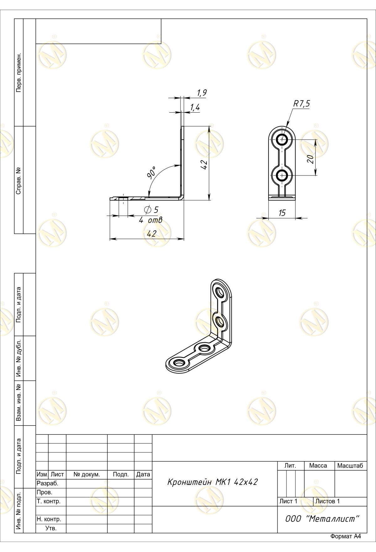 КРОНШТЕЙН МК-1 42*42 (400 шт.) от 4.79 руб с доставкой в интернет-магазине завода «Металлист». Качественная продукция. Выгодные цены. Продукция от производителя. 400 шт. в коробке