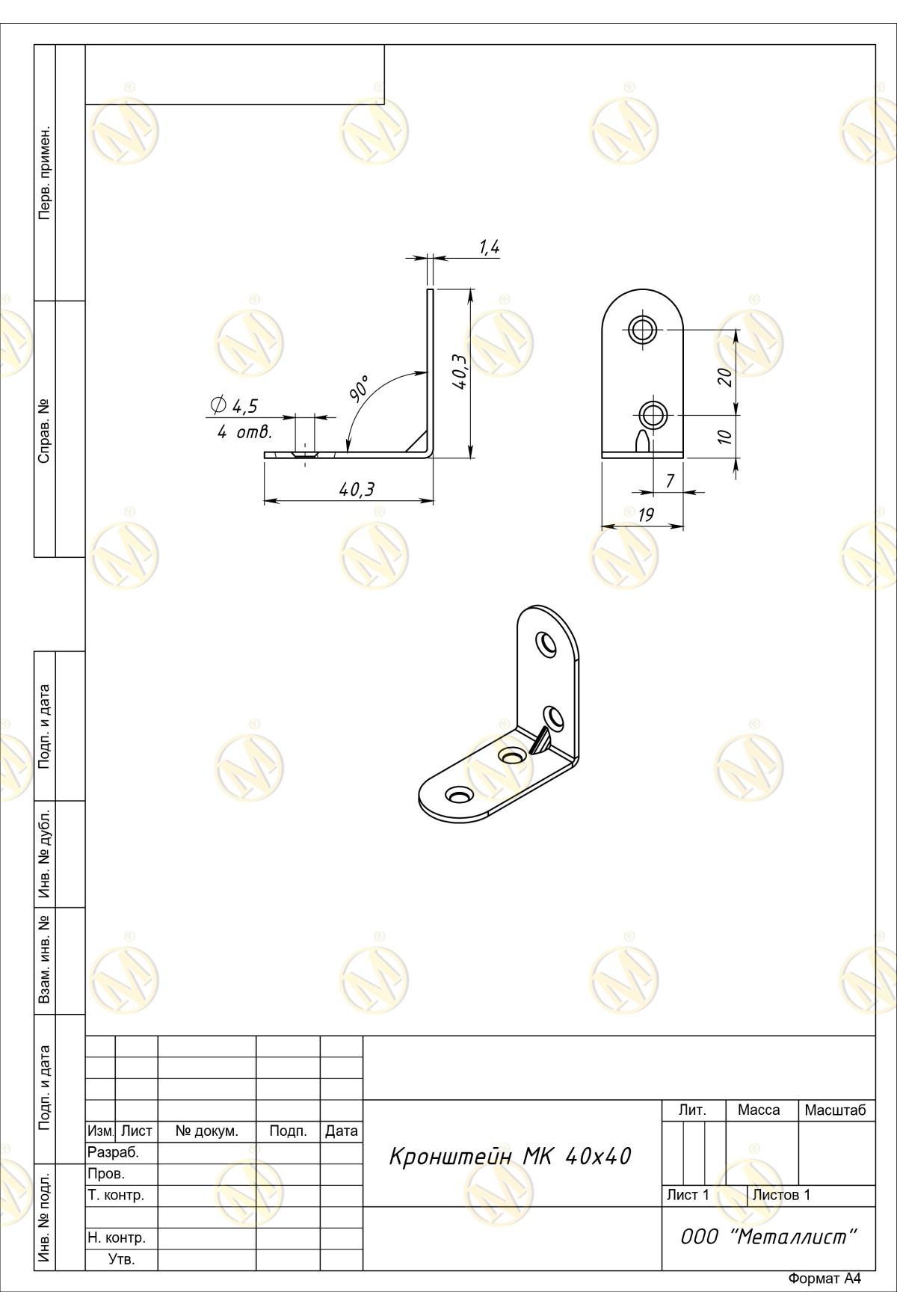 КРОНШТЕЙН МК 40*40 (500 шт.) от 4.59 руб с доставкой в интернет-магазине завода «Металлист». Качественная продукция. Выгодные цены. Продукция от производителя. 500 шт. в коробке