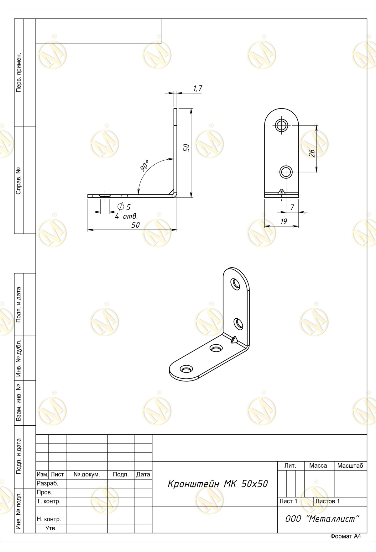 КРОНШТЕЙН МК 50*50 (200 шт.) от 13.13 руб с доставкой в интернет-магазине завода «Металлист». Качественная продукция. Выгодные цены. Продукция от производителя. 200 шт. в коробке