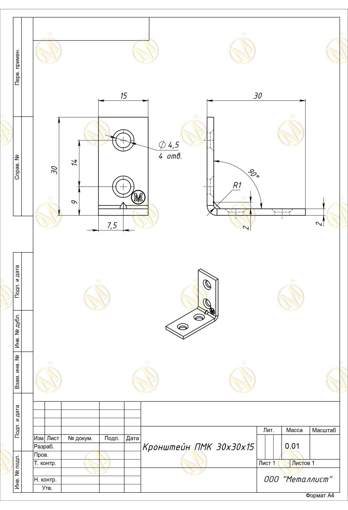 КРОНШТЕЙН ПМК 30*30*15 (прямоугольный) (400 шт.) от 3.52 руб с доставкой в интернет-магазине завода «Металлист». Качественная продукция. Выгодные цены. Продукция от производителя. 400 шт. в коробке