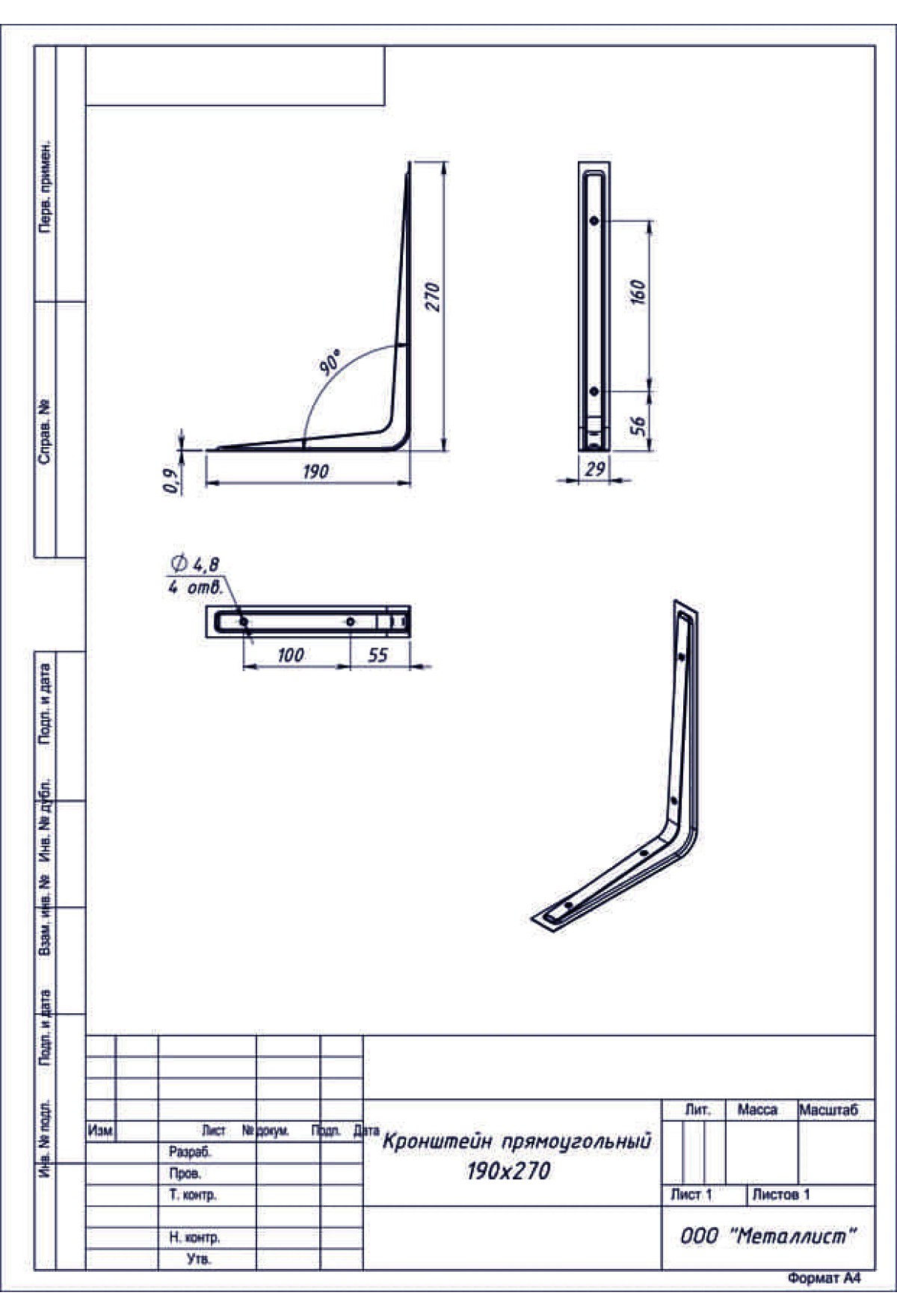 КРОНШТЕЙН ПРЯМОУГОЛЬНЫЙ 190*270 (20 шт.) от 71.44 руб с доставкой в интернет-магазине завода «Металлист». Качественная продукция. Выгодные цены. Продукция от производителя. 20 шт. в коробке