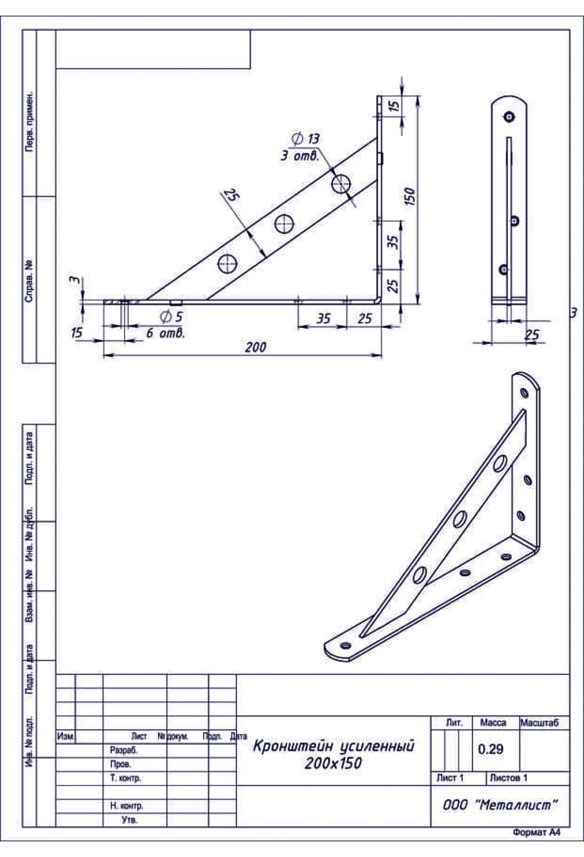 КРОНШТЕЙН УСИЛЕННЫЙ 200*150 (10 шт.) от 110.88 руб с доставкой в интернет-магазине завода «Металлист». Качественная продукция. Выгодные цены. Продукция от производителя. 10 шт. в коробке