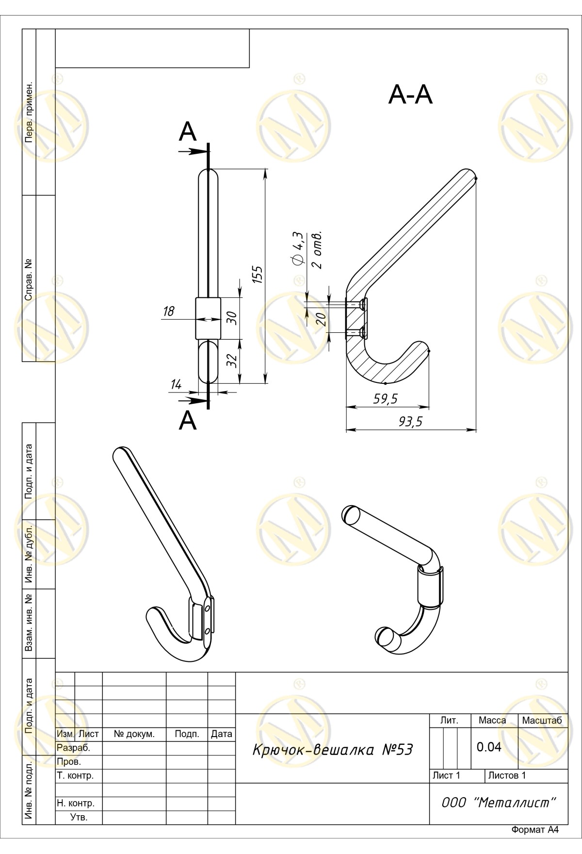 КРЮЧОК-ВЕШАЛКА №53 (100 шт.) от 18.95 руб с доставкой в интернет-магазине завода «Металлист». Качественная продукция. Выгодные цены. Продукция от производителя. 100 шт. в коробке
