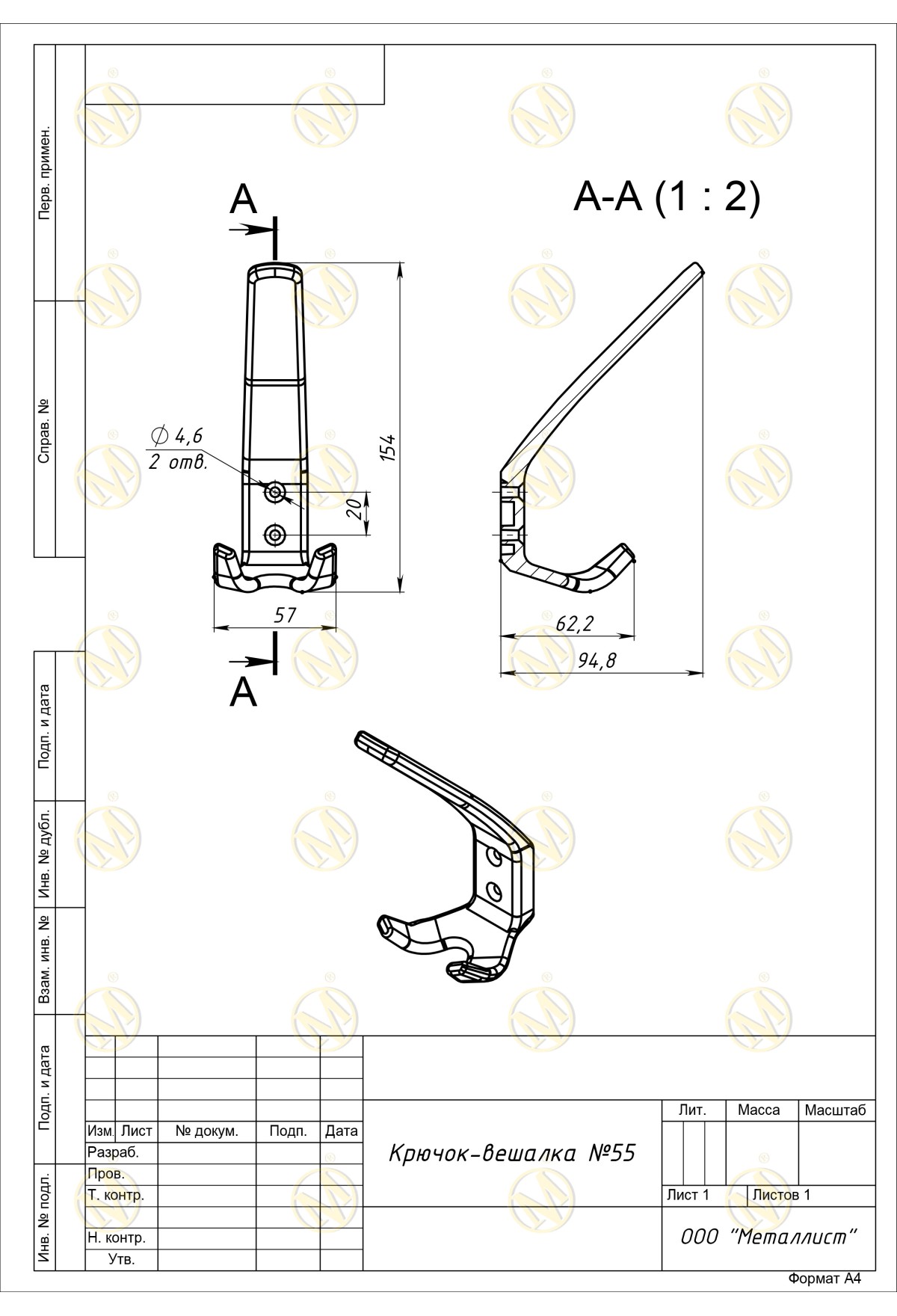 КРЮЧОК-ВЕШАЛКА №55 (50 шт.) от 39.03 руб с доставкой в интернет-магазине завода «Металлист». Качественная продукция. Выгодные цены. Продукция от производителя. 50 шт. в коробке