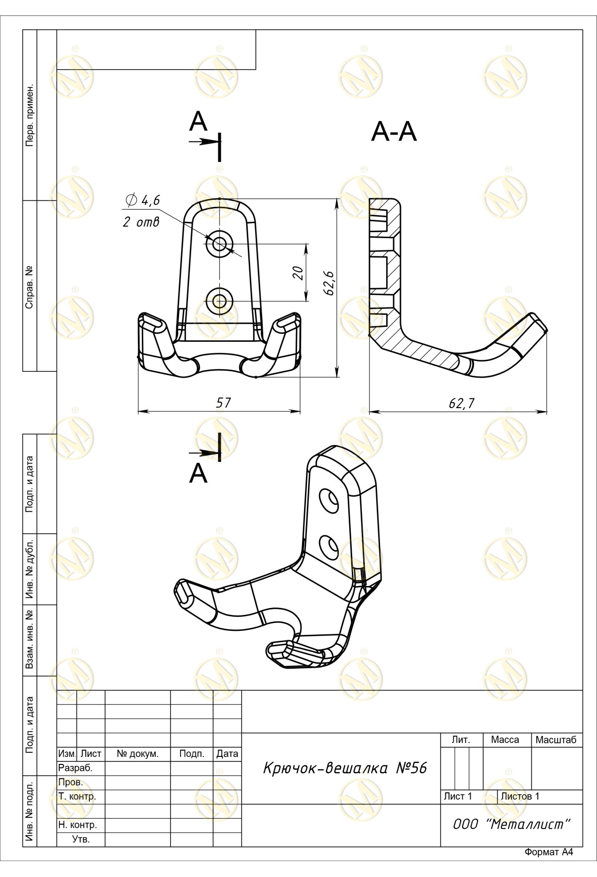 КРЮЧОК-ВЕШАЛКА №56 (50 шт.) от 21 руб с доставкой в интернет-магазине завода «Металлист». Качественная продукция. Выгодные цены. Продукция от производителя. 50 шт. в коробке